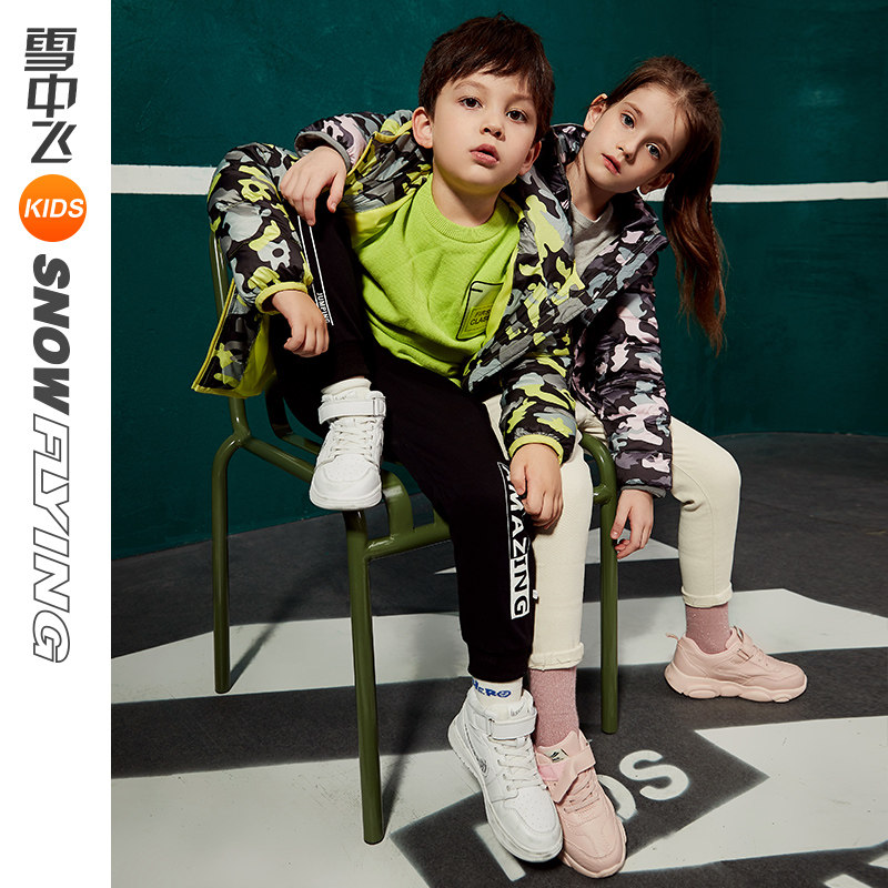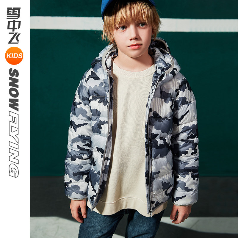 Snow middle flying kids children's clothes children down clothes light and thin models for men and women short models of camouflavored dress and hats fashion winter clothing