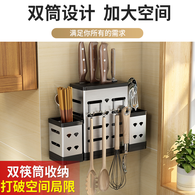 Home Chopstick Cage Shelve Stainless Steel Tableware Supplies Chopstick Cylinder Drain Shelf Free of perforated wall-mounted storage box-Taobao