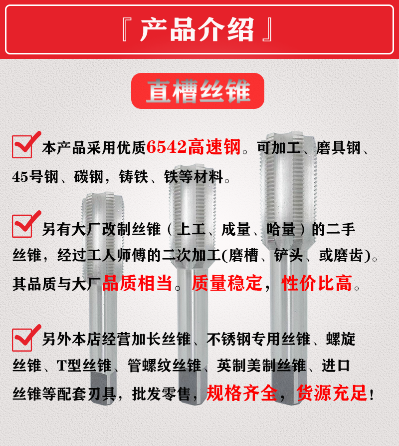 Full range of screw taps: