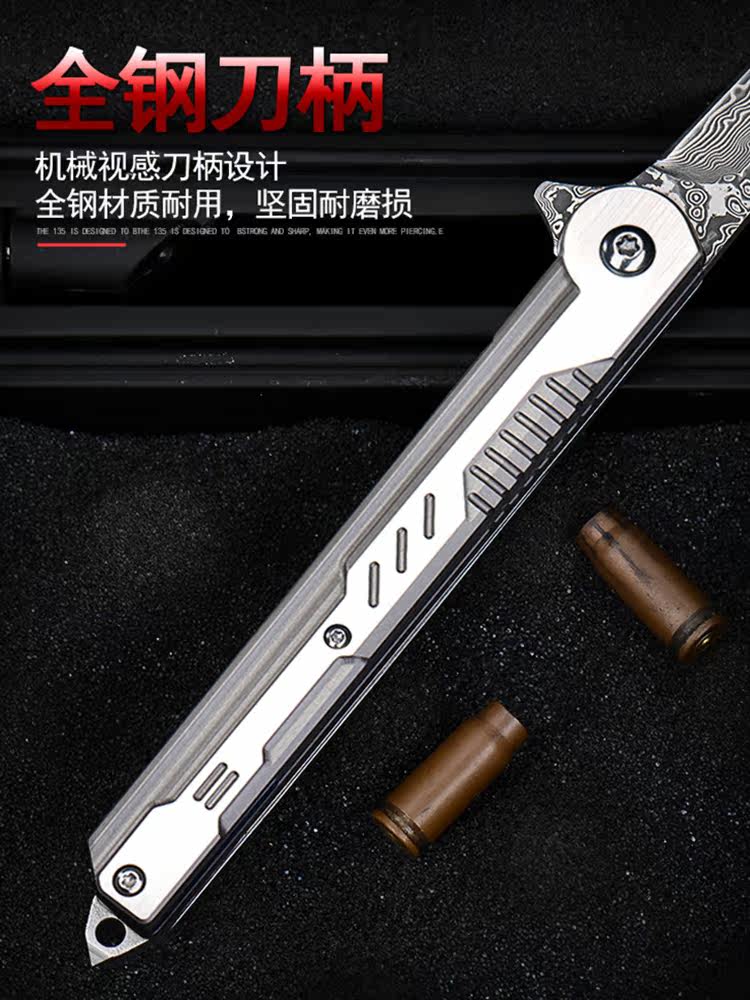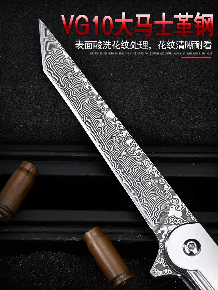 Damascus steel knife folding knife outdoor high hardness sharp bearing mini self-defense pocket knife military Labor folding knife