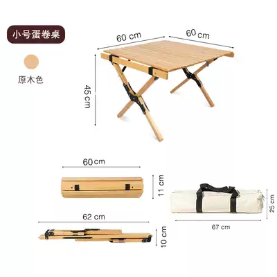 Outdoor camping solid wood egg roll table folding table home courtyard self driving barbecue picnic table portable table and chair