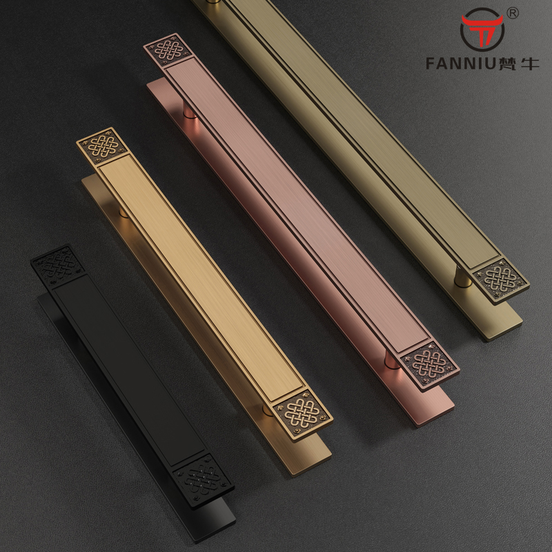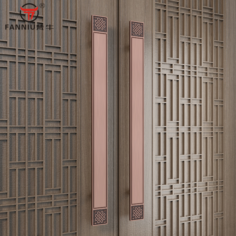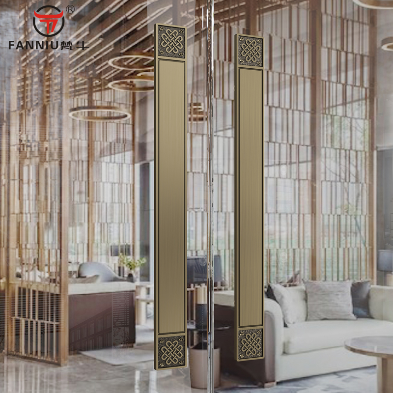 New Chinese push-pull glass door Ancient copper handle clubhouse bag compartment Double switch wooden door pair with handle ballroom Long door handle