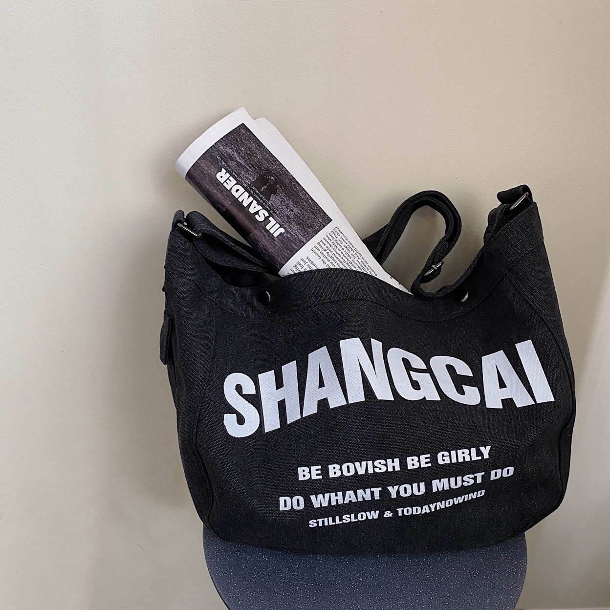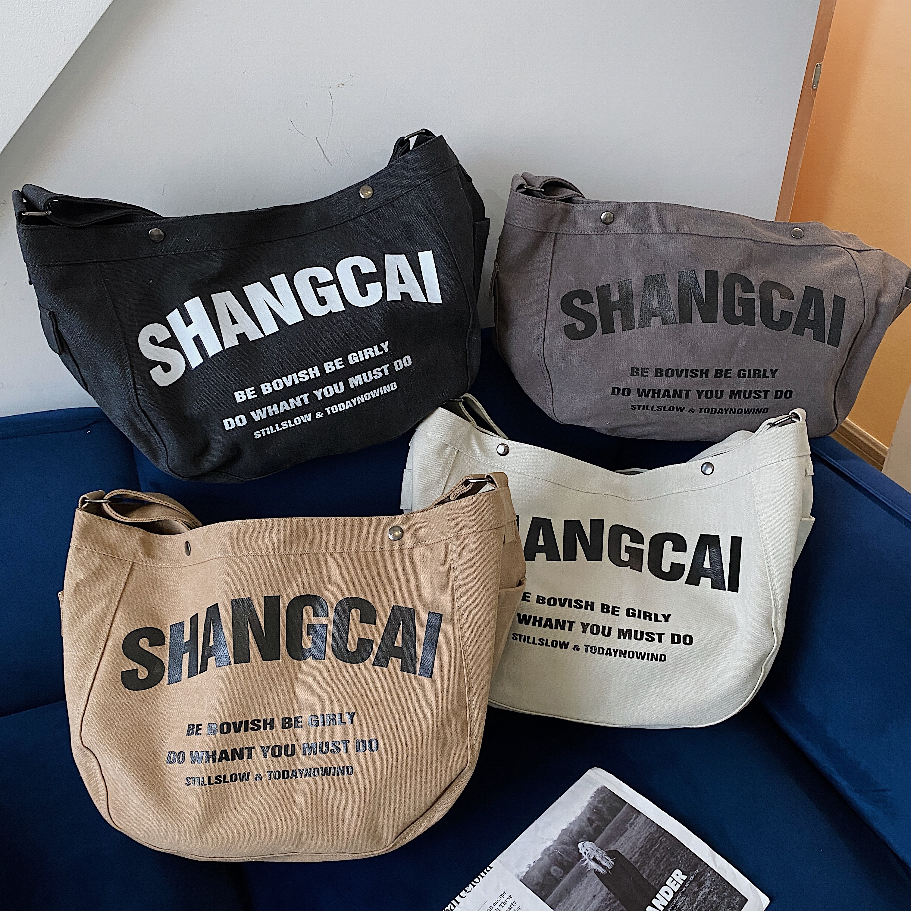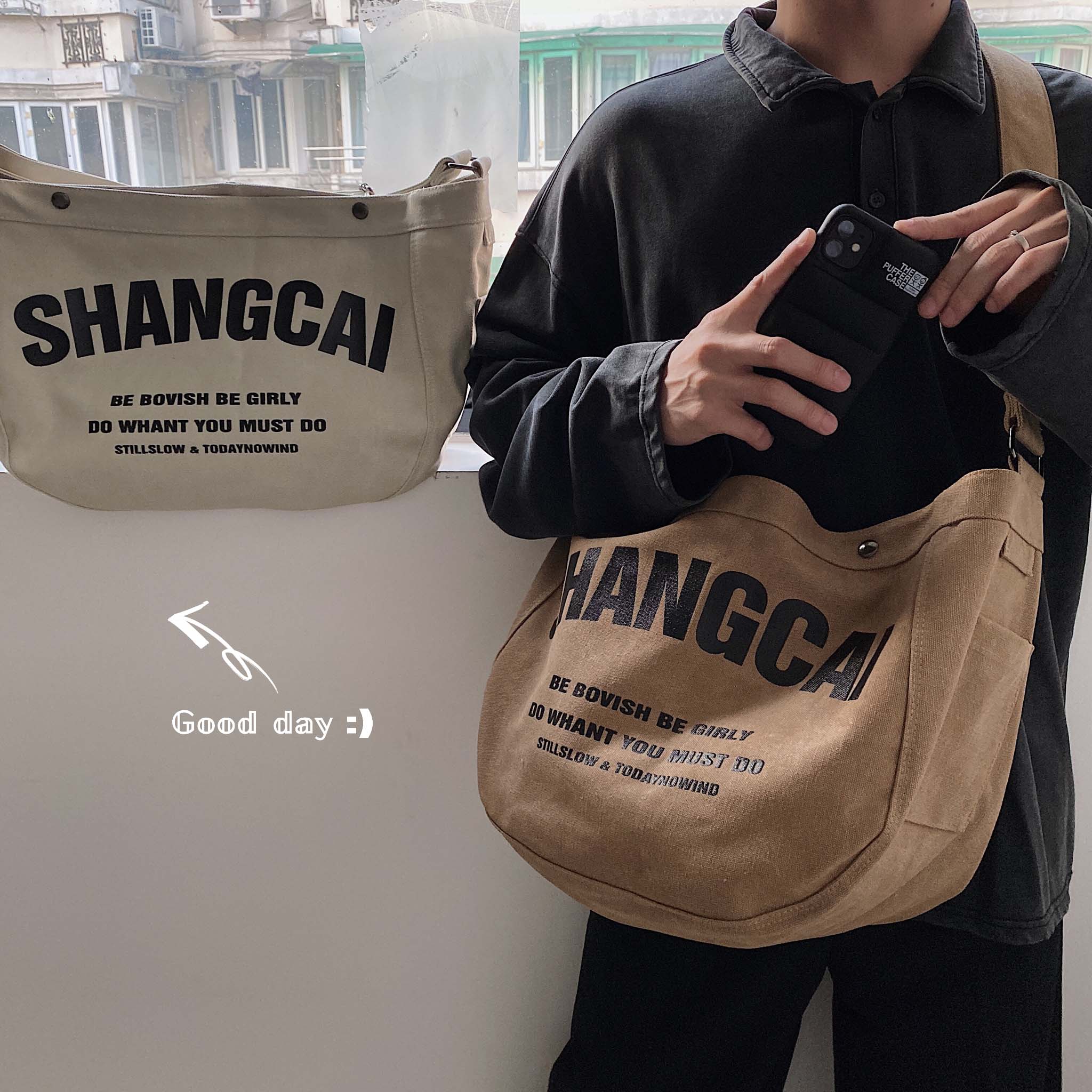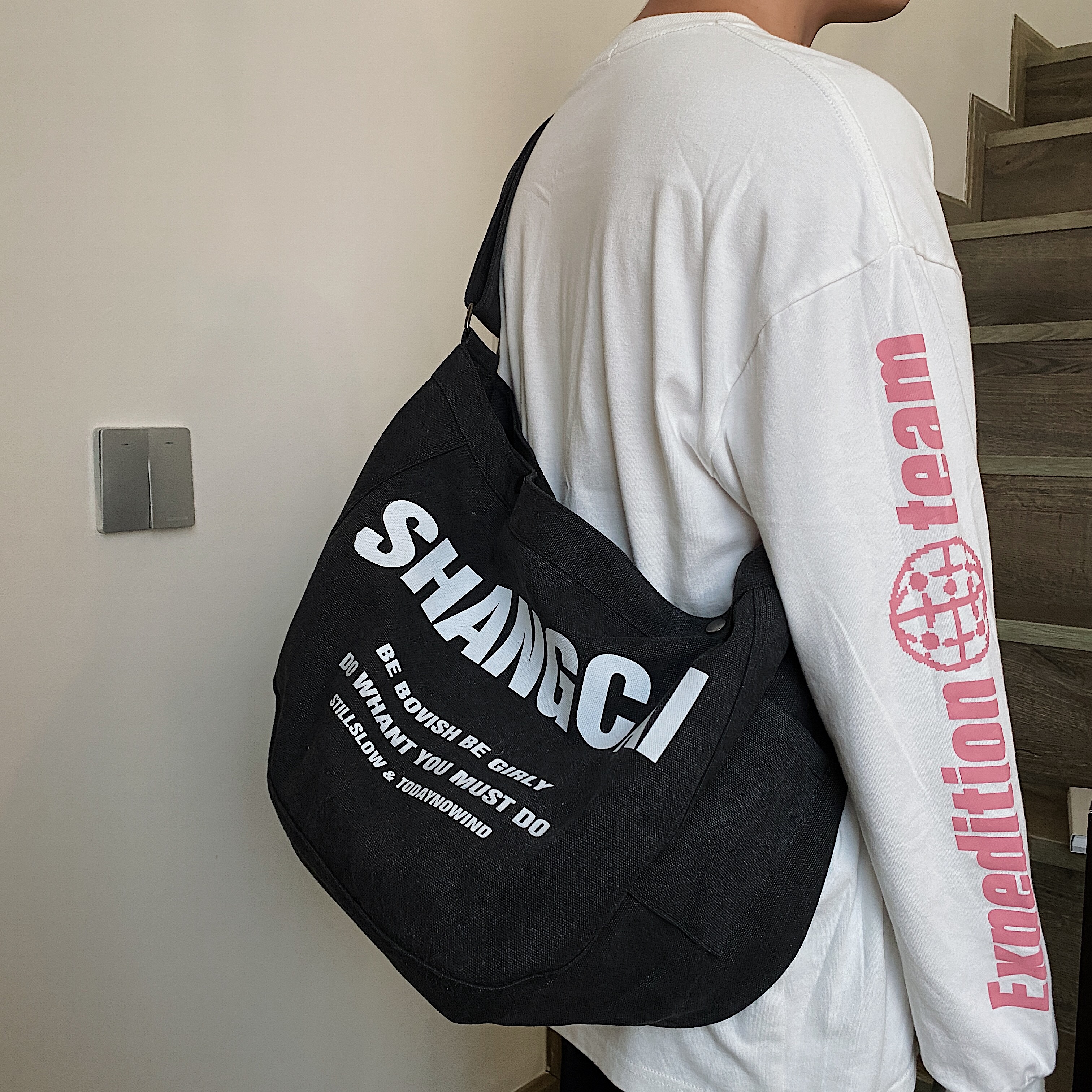 Men's letter canvas bag lazy wind Korean version large capacity messenger bag ins shoulder class bag leisure shoulder trendy bag