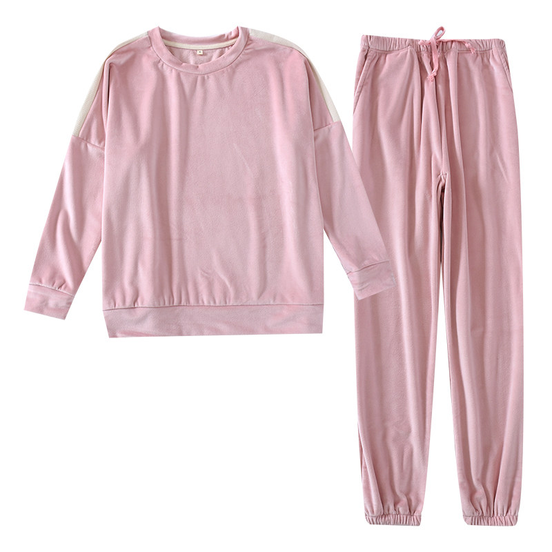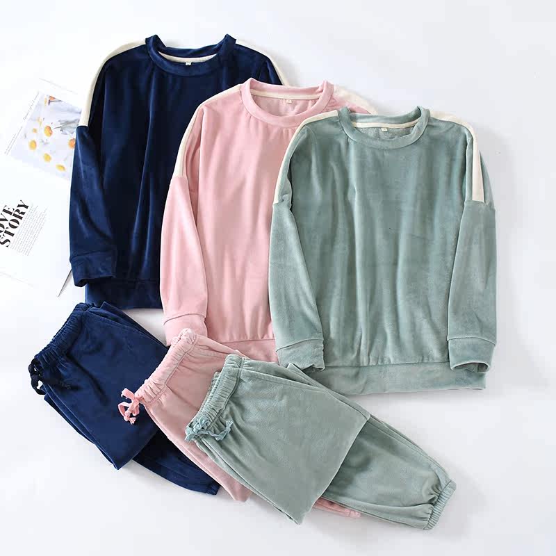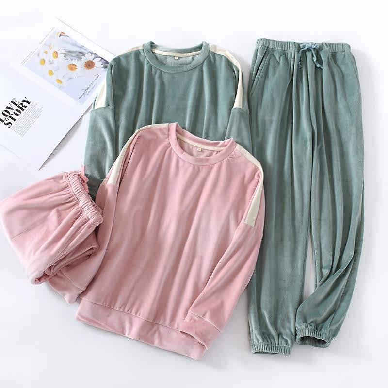 Thin flange flannel pyjamas woman winter heating house headsets Garsecting warm elastic mid-thick island suede home suit suit