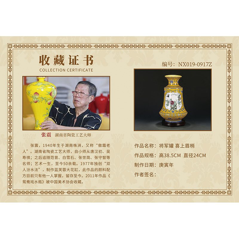 Heavy gave gift to Hunan Ceramic Art Master Zhang Zheng works of enamel vase swing parts reward NX019