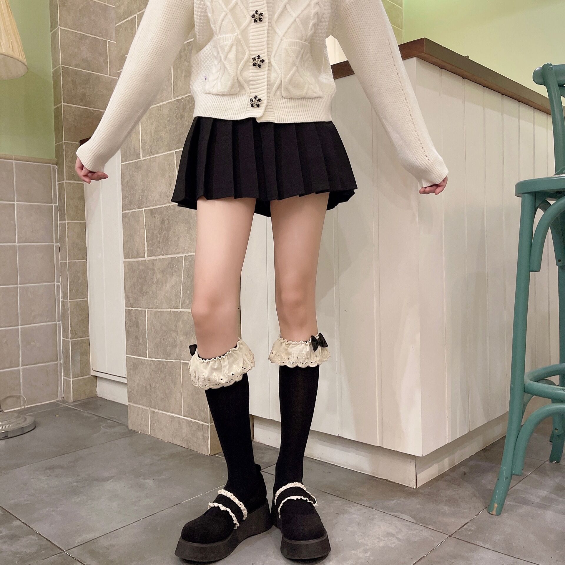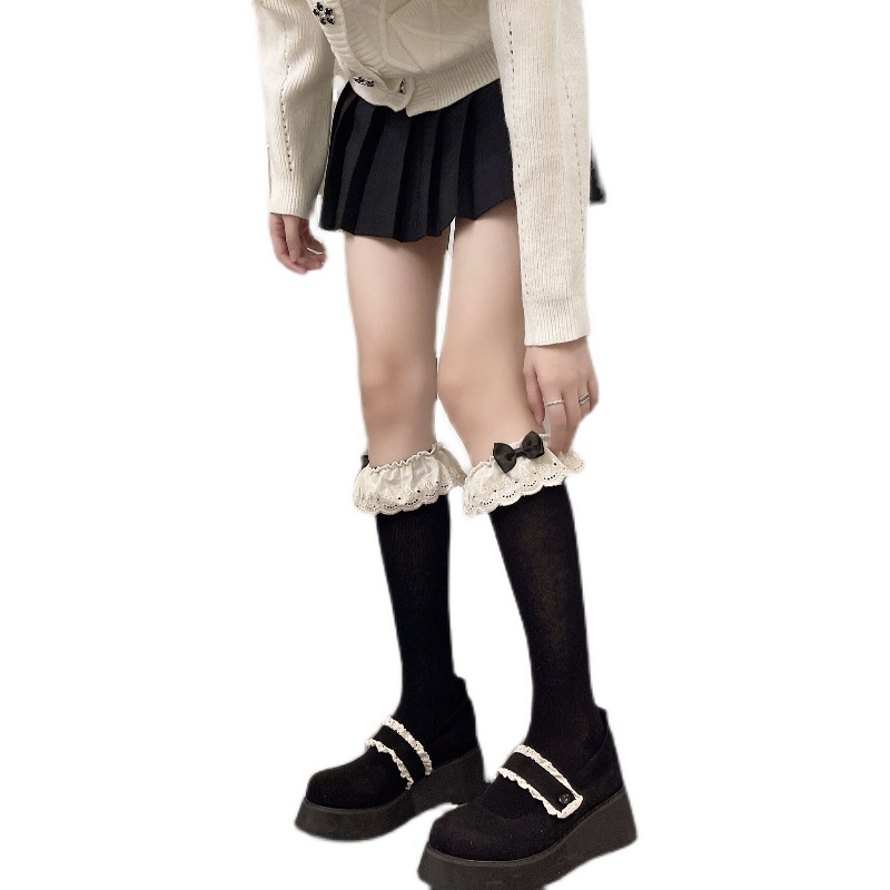 New retro palace style golden embroidery hollow lace cotton socks Lolita soft cute calf socks