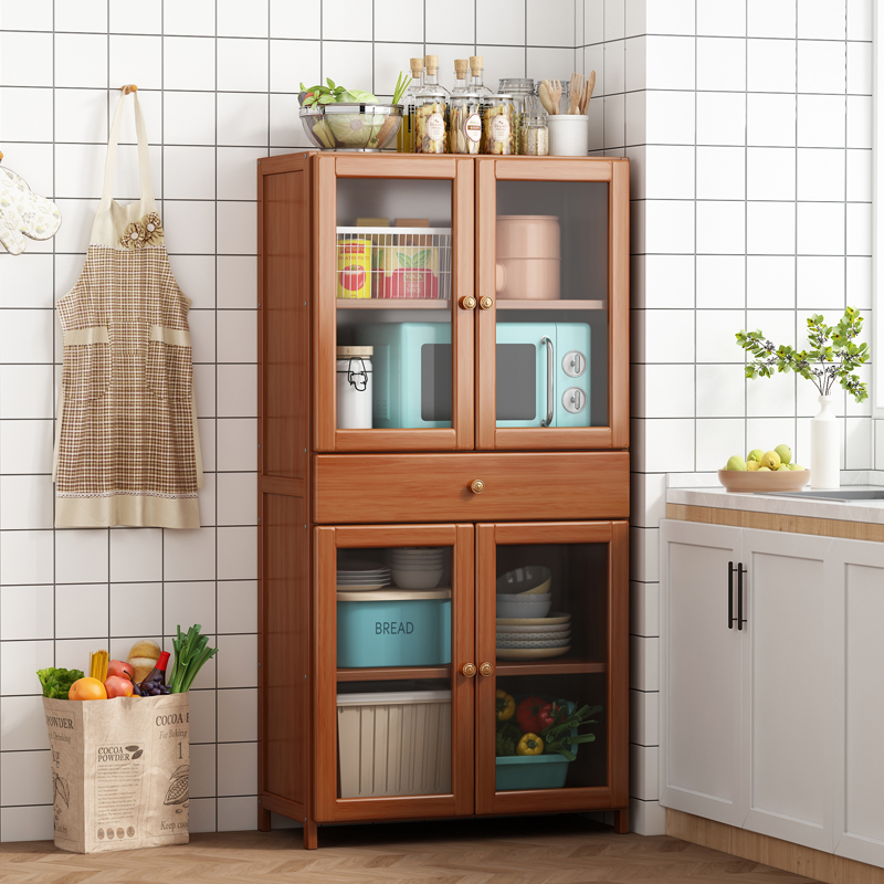 Kitchen shelve solid wood floor modern minimalist with door integral cupboard home dust-proof visual light and luxurious Nordic dining cabinet