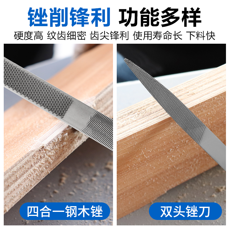 Four-in-one wood filing (applicable for soft and hard wood plastic, etc.) Double head pointed flat filing knife (applicable for metal wood etc.) Double head filing knife (semicircular tip flat) (metal wood etc. applicable)