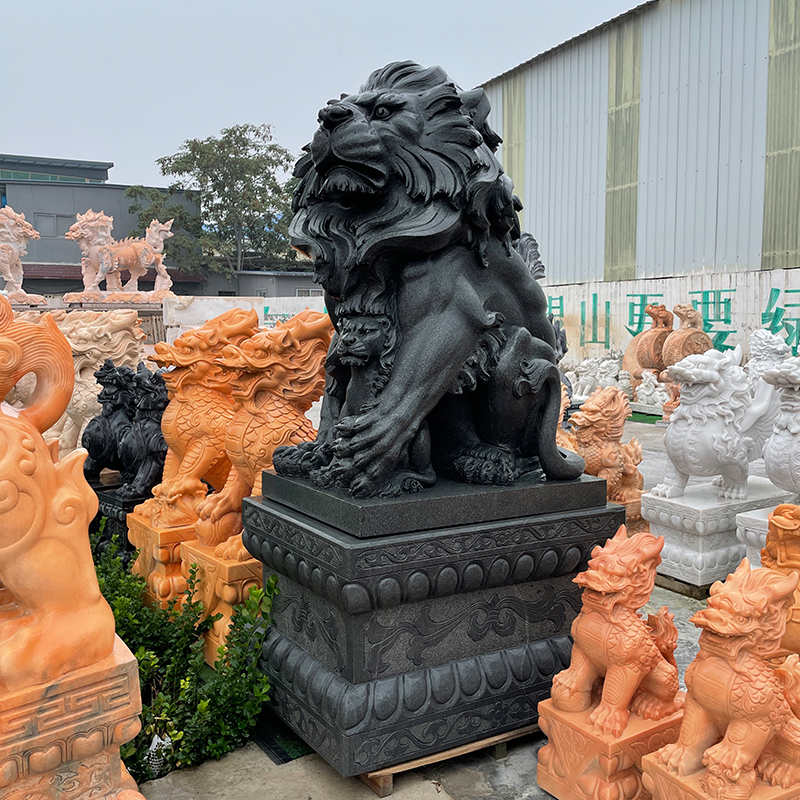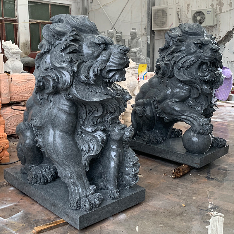 Granite European Stone Lion A pair of stone carvings climbing lions Bank Hotel Villa Gate Town House Decoration Kirin Pixiu