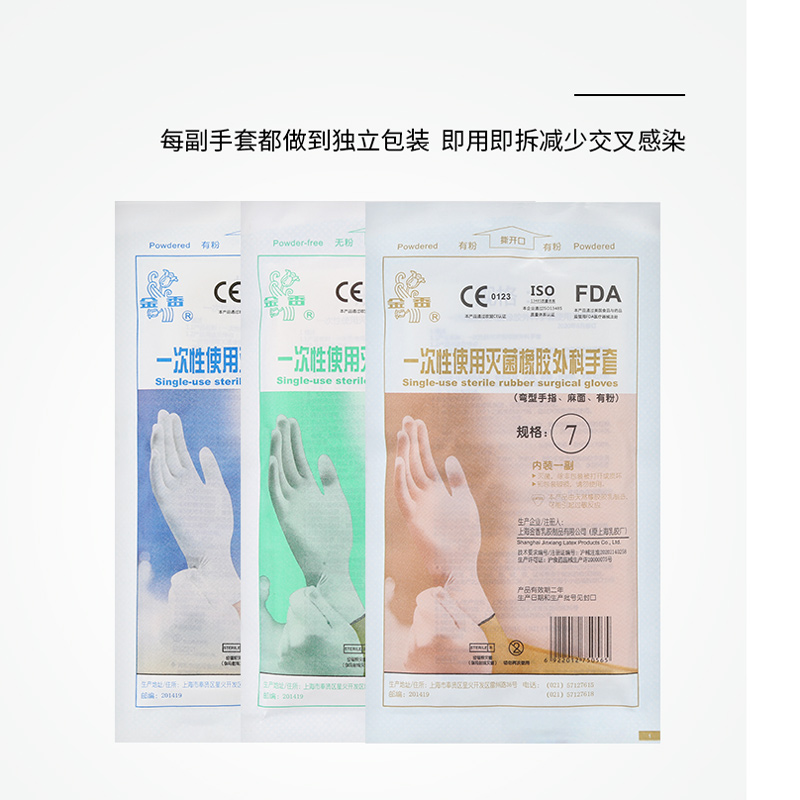 Golden Incense Disposable Use Sterilization Gloves Medical Rubber Checked Surgical Gloves Protective Medical Epidemic Prevention