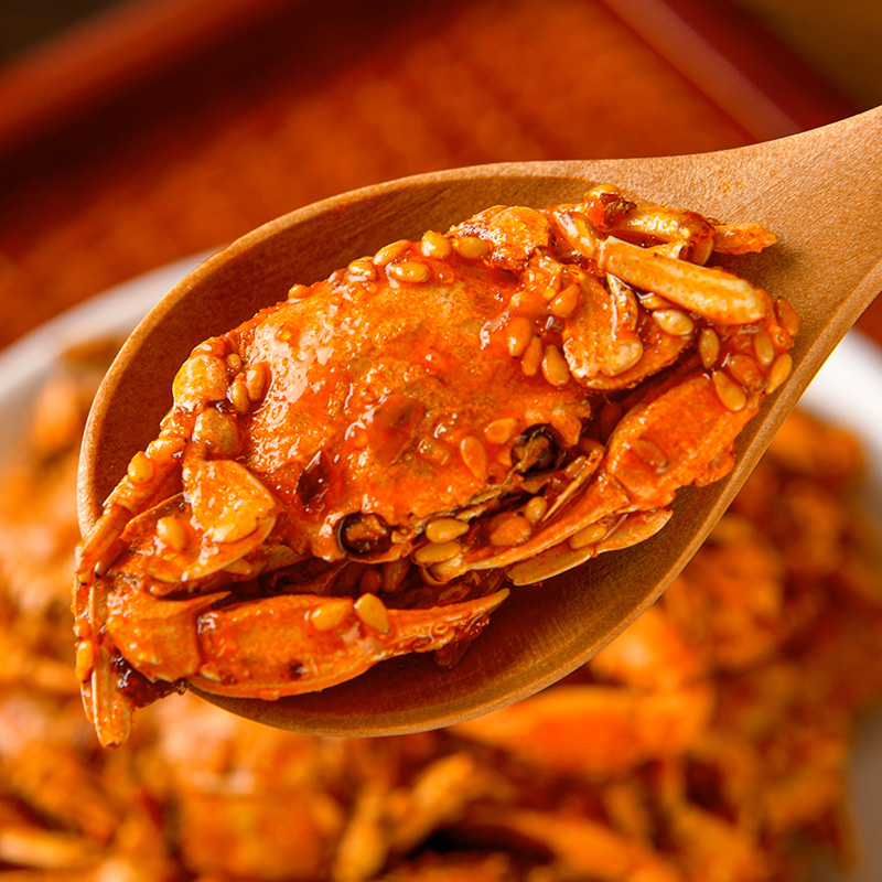 Savory crab ready-to-eat seafood snacks spicy little crab meat bagged crisp lower wine lettule net red and casual antiquate snacks