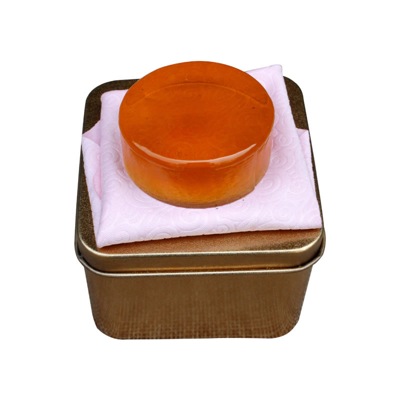 A piece of yellow rosin in a pink box A piece of yellow rosin in a red box A piece of yellow rosin in a blue box A piece of yellow rosin in a gold box A piece of yellow rosin in a silver box