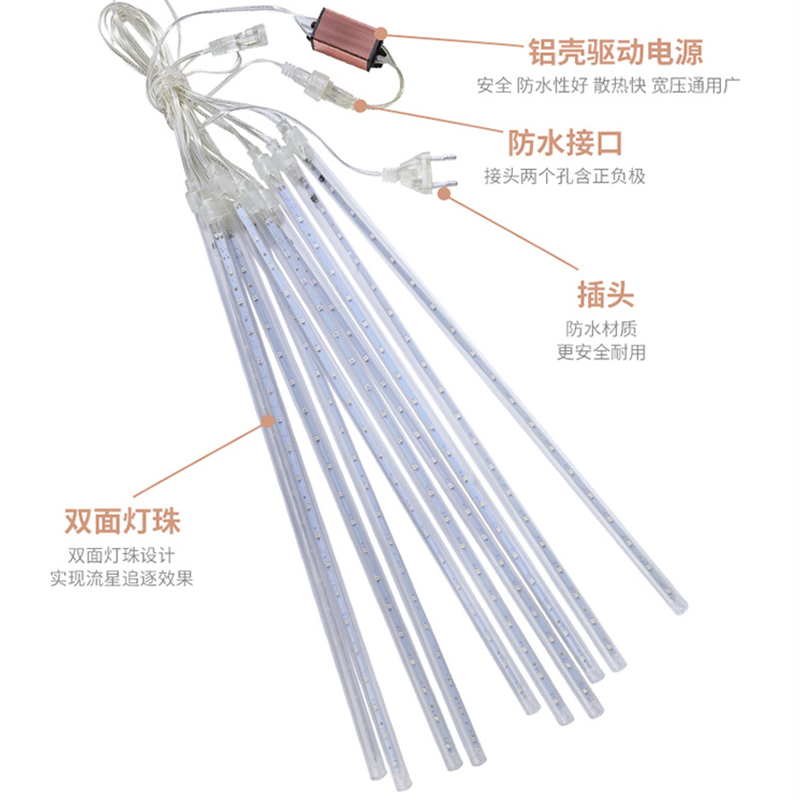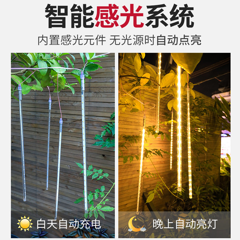 Meteor Shower LED Light Outdoor Waterproof Hanging Tree Light String Garden Landscape Colorful Light Strip Flashing Solar Decorative Light