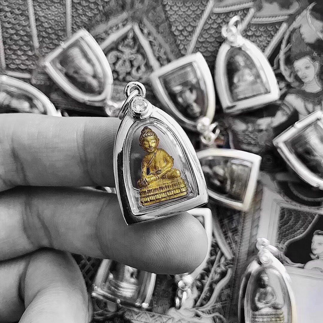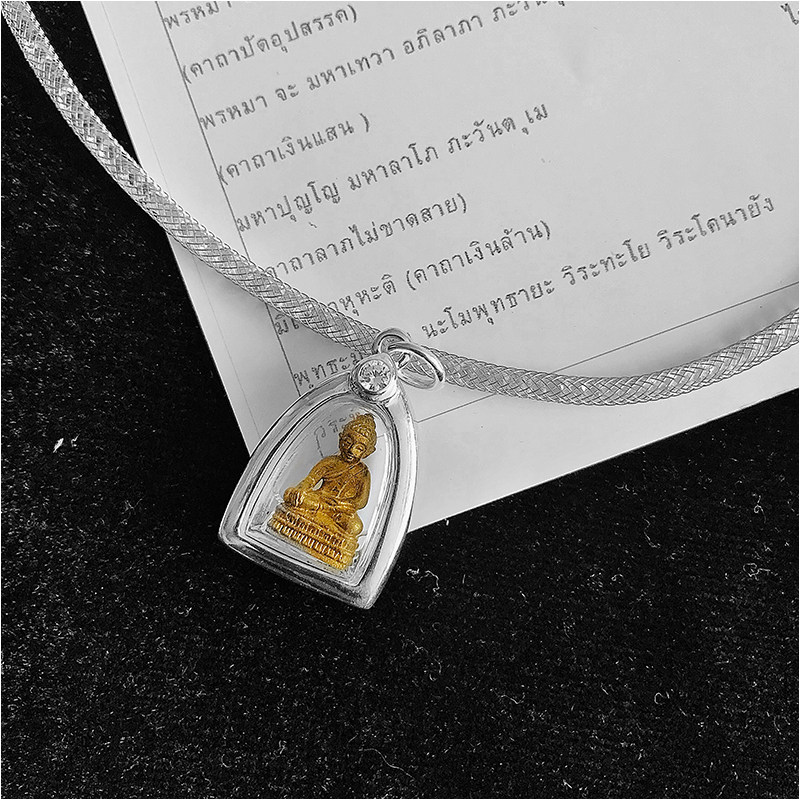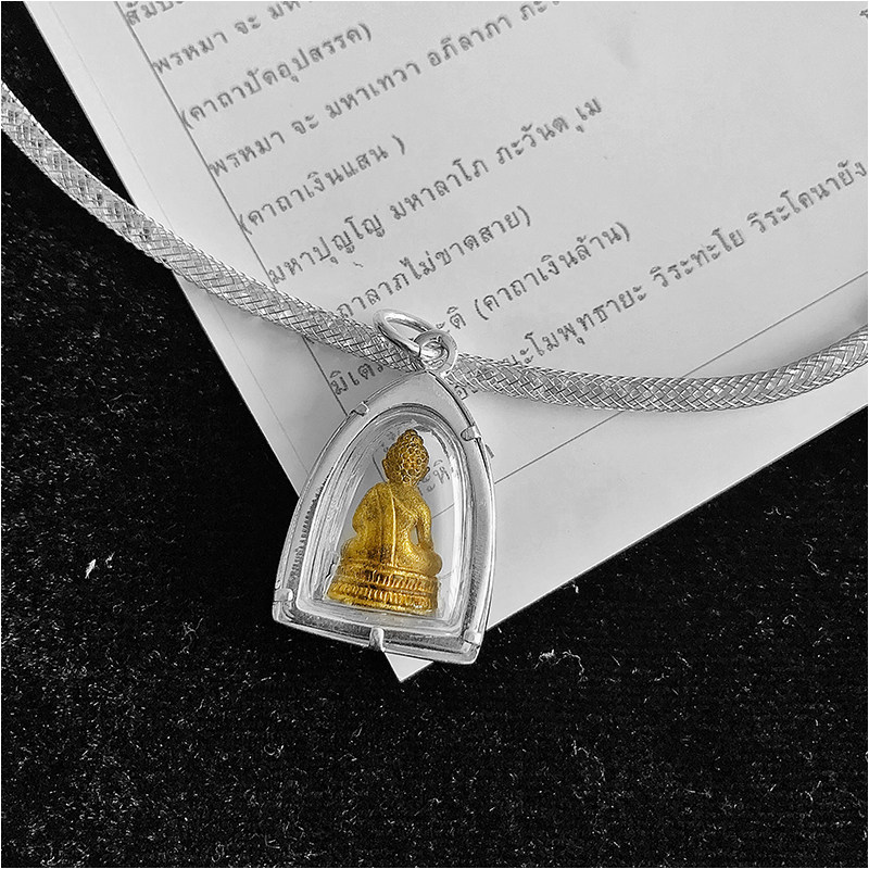 Thai Buddha Medal Rock Mini Drugmaker Pure Silver Shell Necklace Pendant