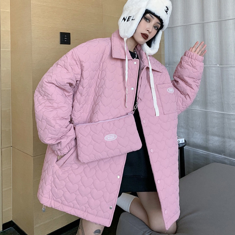How to do foam sweets High Street cotton clothes Girl 2021 Winter new loose 100 Lap Cotton Clothing Thick Coat Delivery Bag