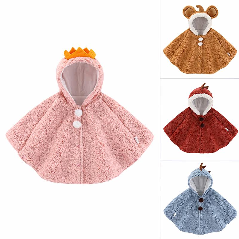 Baby Cloister Cape Autumn Winter Out Windproof Plus Suede Warm Newborn Shawl With Cap Thickened Baby Wind Clothes