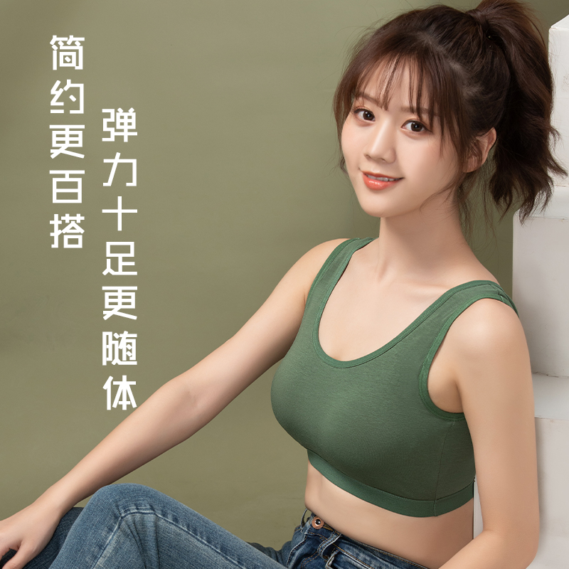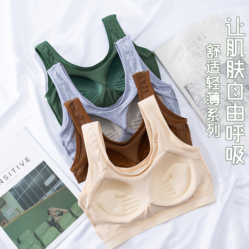 South Pole Man Beauty Back Vest Style Pure Cotton Smear Underwear Woman Xia Thin Anti-Walking Light Wrap Breast High School High School Girl Bra