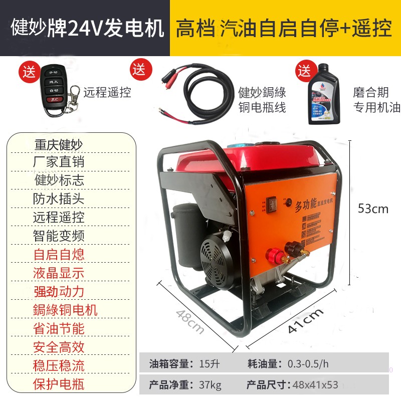 Large card roof placed in car air-conditioning generator 24V3000W DC generator open-frame petrol engine muted