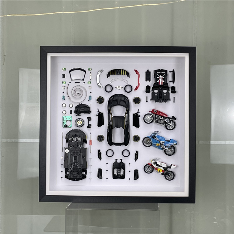 Red sports car model black with 3 motorcycle racing models-yellow racing model-red and yellow 4 motorcycle horizontal planes framed painting green with 1 motorcycle gray sports car model-vertical version