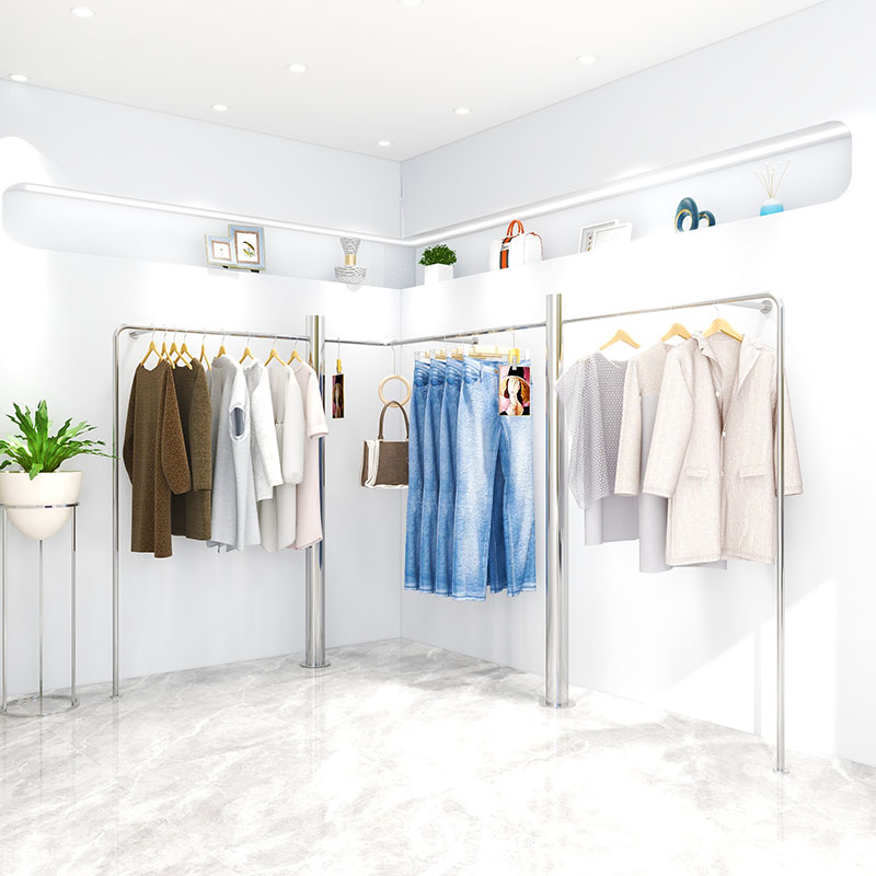 Inky brand new clothing store shelves Island Shelf Stainless Steel Wire Drawing Upper Wall Floor Shelf