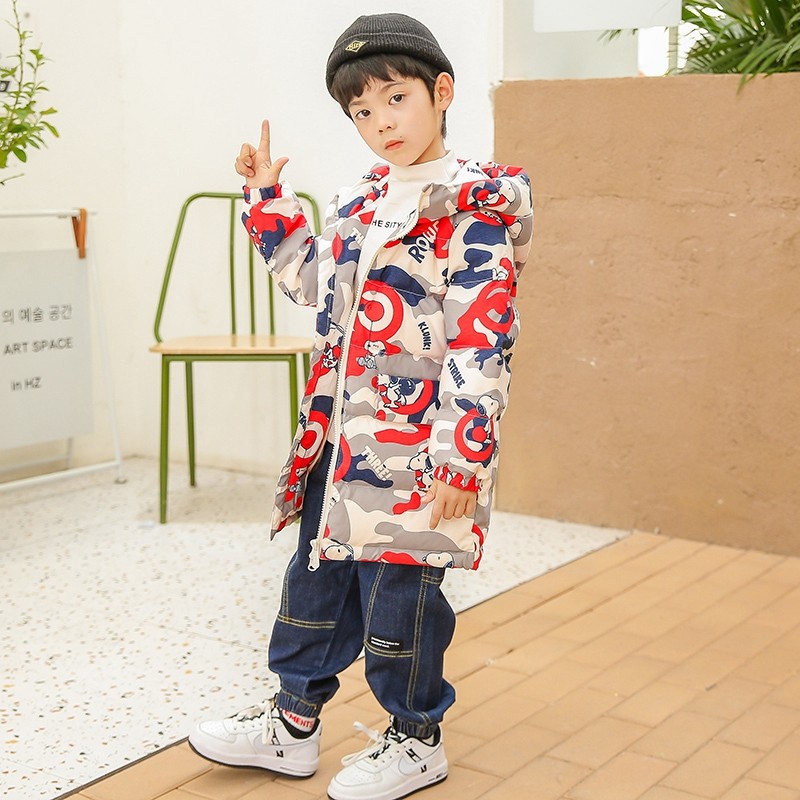 Innubissnoopy boy down jacket 2021 new white duck suede medium long version thick children suit winter jacket