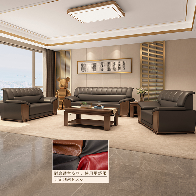 Office Sofa Brief Modern Solid Wood Chinese Hupeach Color Business Reception Room Hotel Lobby Upscale Genuine Leather Combination