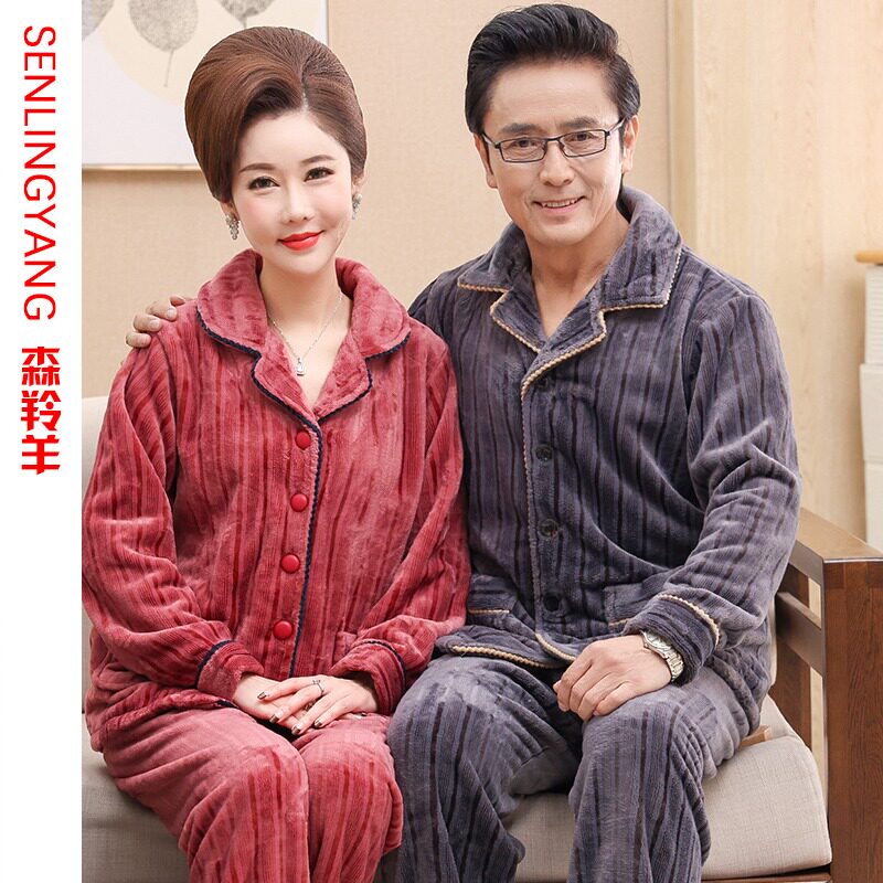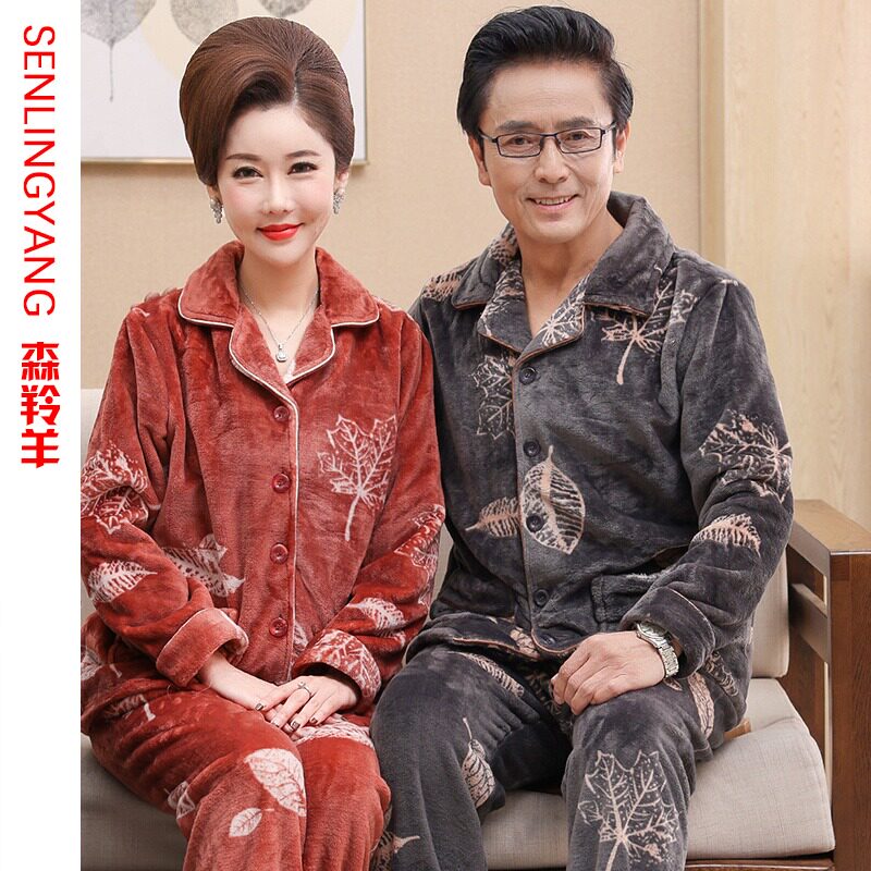 Autumn Winter Coral Suede Pajamas Women Winter Dads Moms Men Plus Suede Thickened Flannel Female Style Home Suit-Taobao