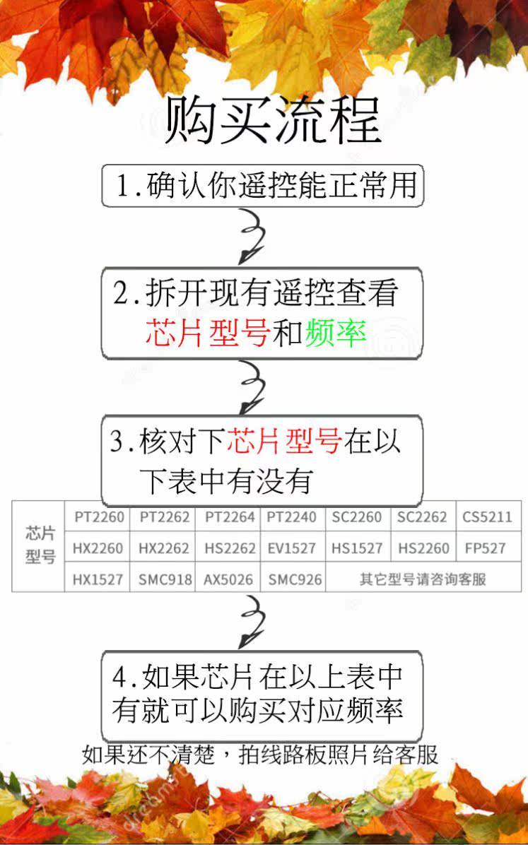 U10-The matching remote control depends on the chip + crystal oscillator batch R77 - (peach wood) 433O77 - (peach wood) 315R58-large metal 433 to 390 390 or 315 please