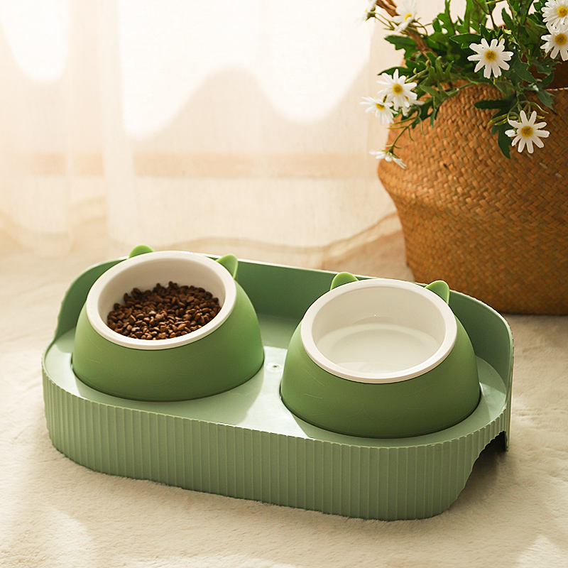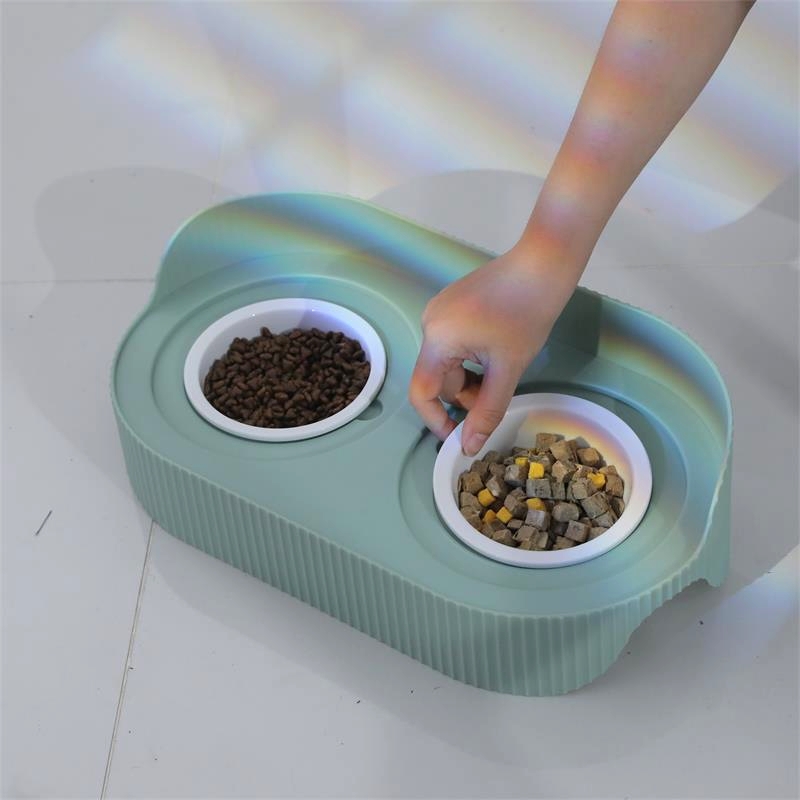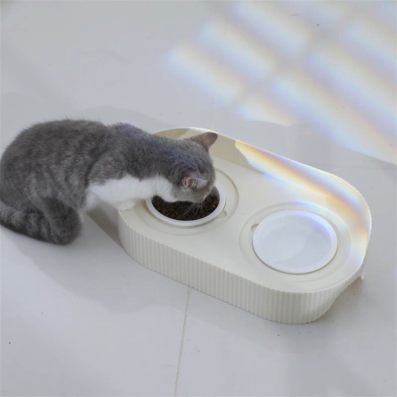 Cat bowl ceramic double bowl cat food bowl dog bowl food bowl protective cervical spine cat food drinking bowl rice bowl pet supplies