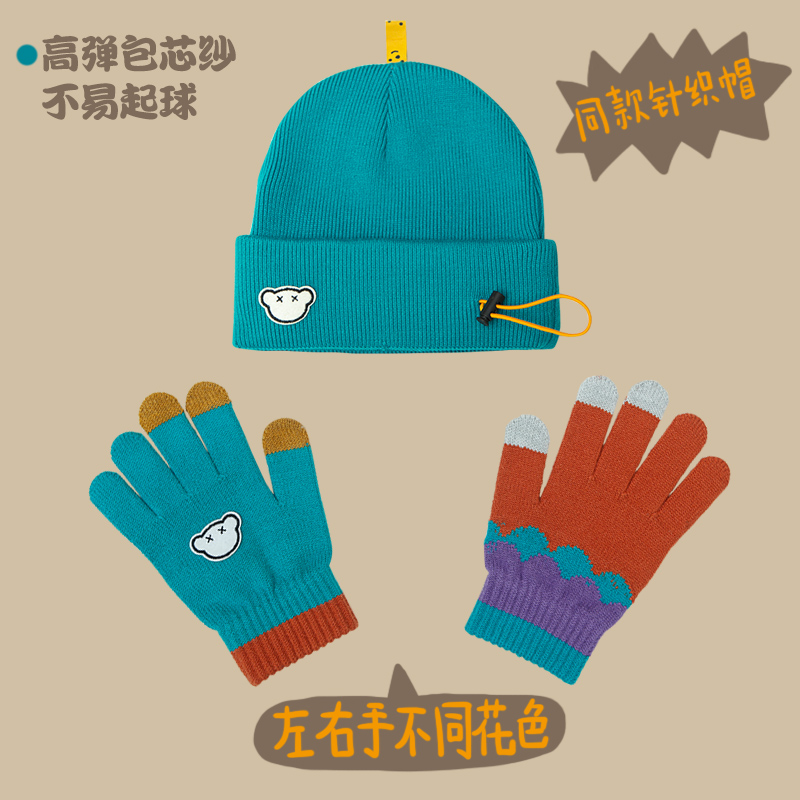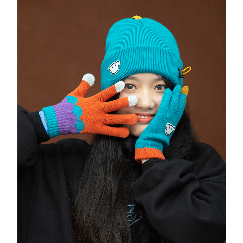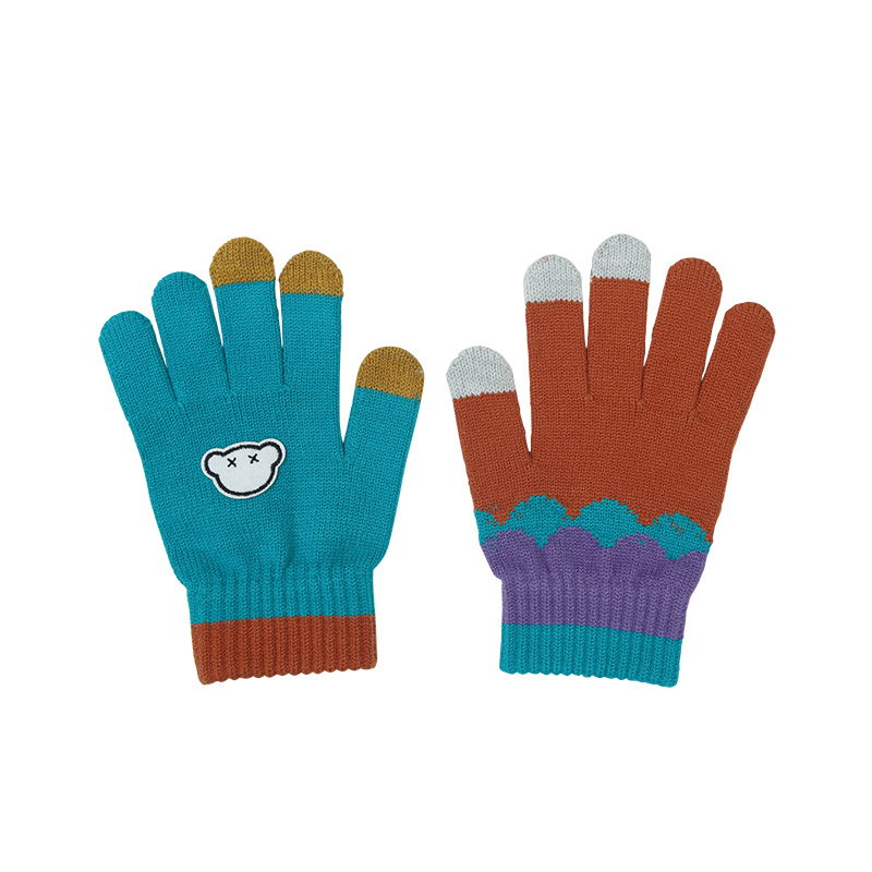 Cub-colored knitting gloves (leather powder) Cub-colored knitting gloves (black) Cub-colored knitting gloves (lake blue) Cub-colored knitting gloves (green-green)