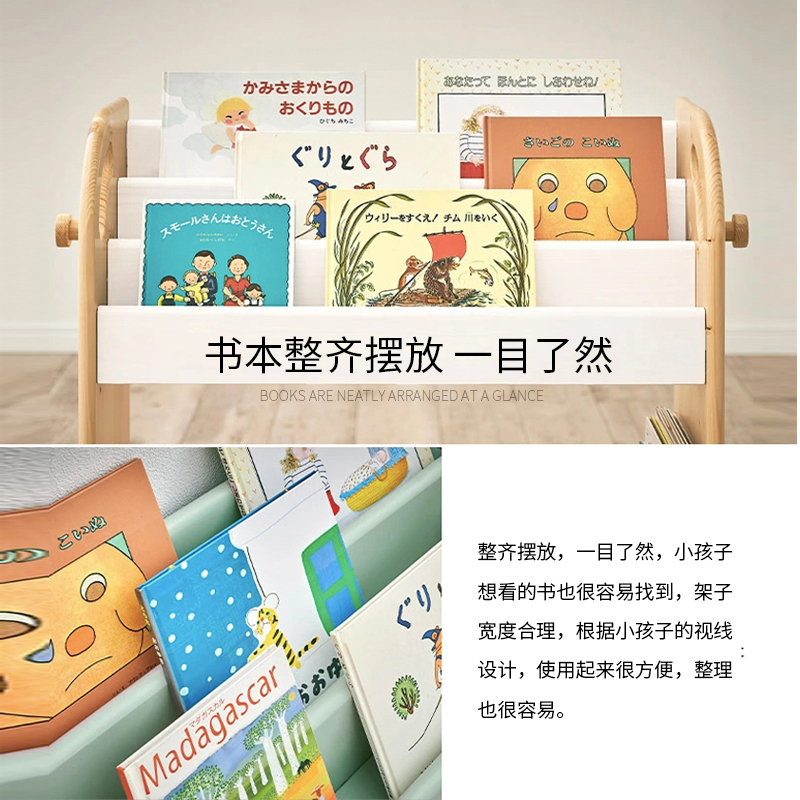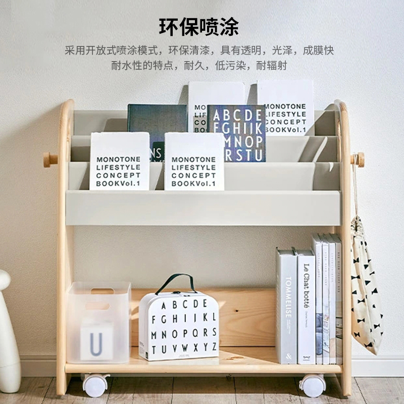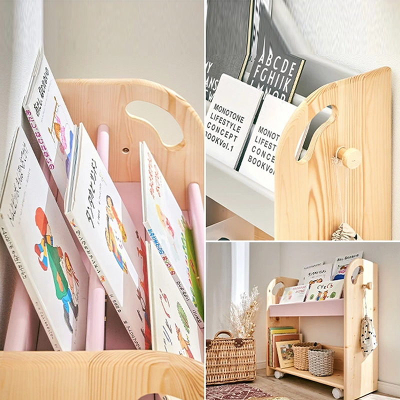 Children's solid wood mobile bookshelves Ploy Toy Two-in-one Shelve Nursery Kindergarten Baby Floor Home