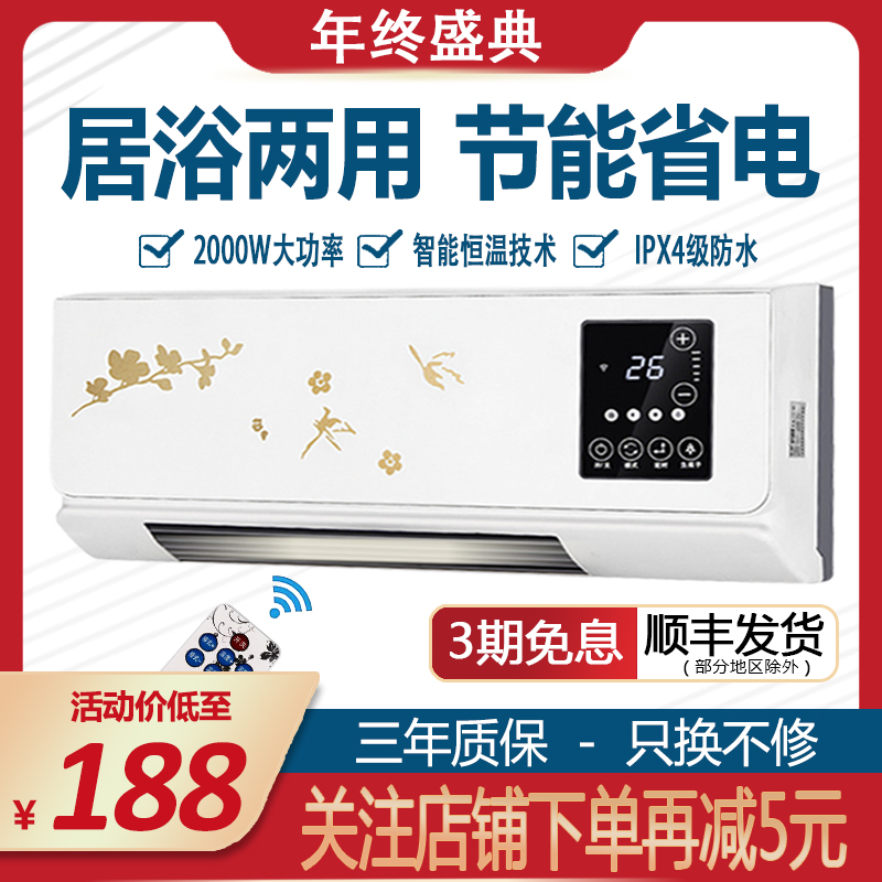 Hot and cold dual-use air-conditioning fan household heater energy-saving quick-heat electric heater bath bedroom waterproof wall-mounted heater