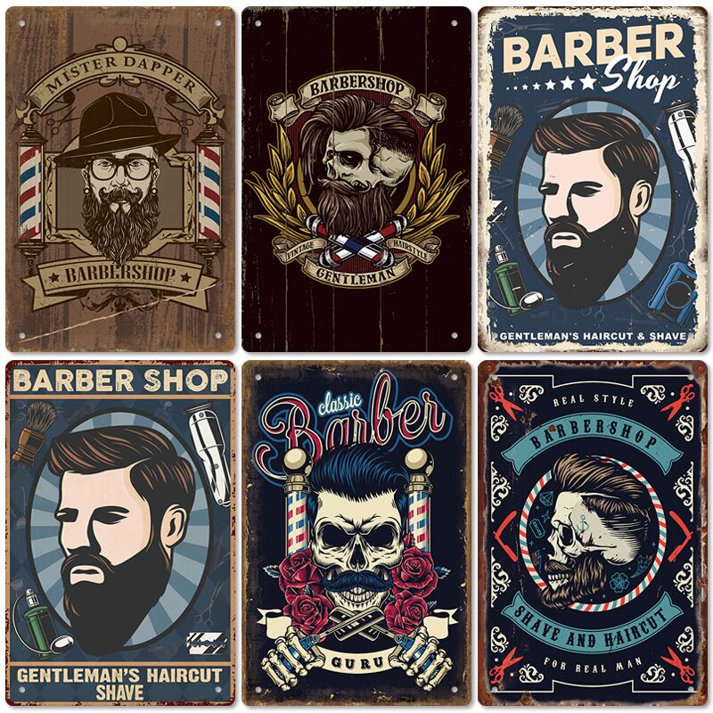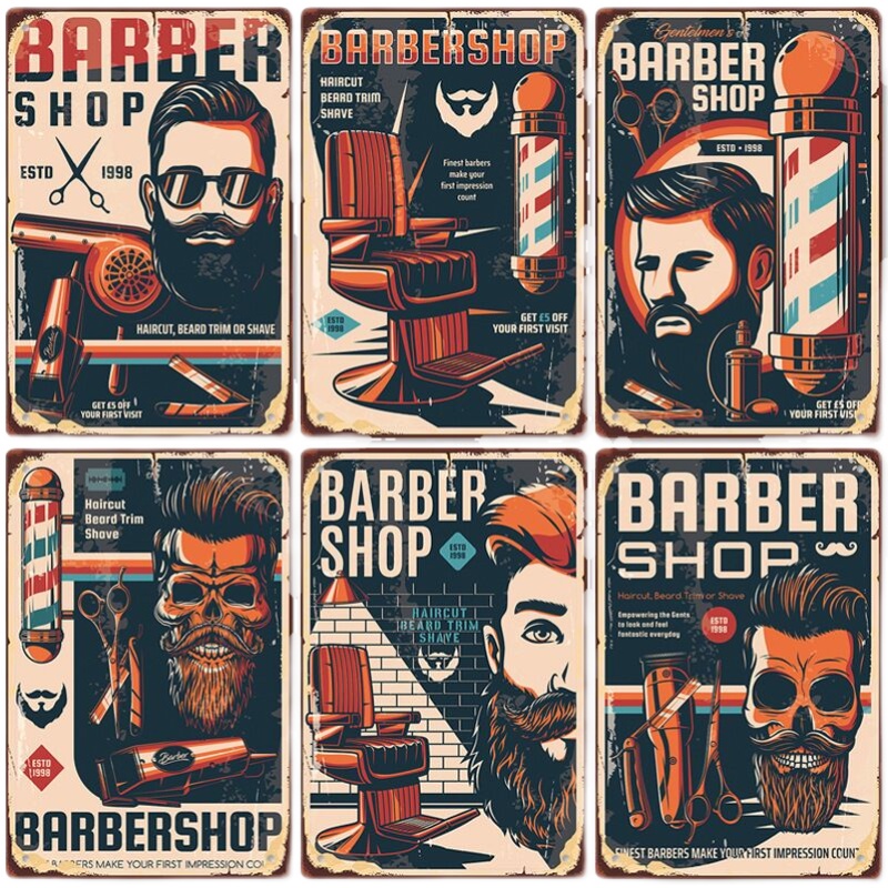 New Barbershop Poster Retro Tin Painting Hairdressshop Background Wall No Frame Decoration Hanging
