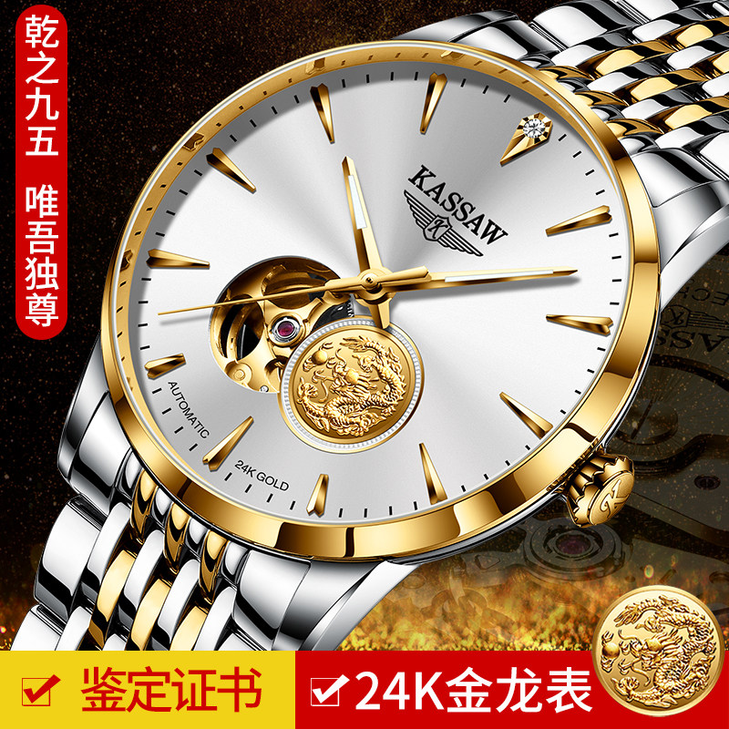 Swiss 24K gold business men's fully automatic mechanical watch hollowed-out Armani Amanny male watches