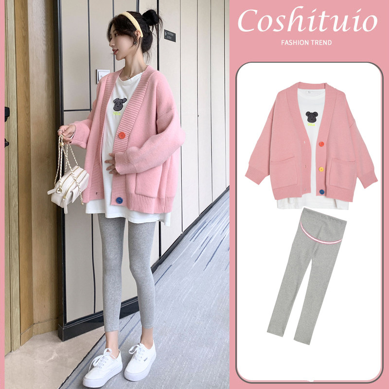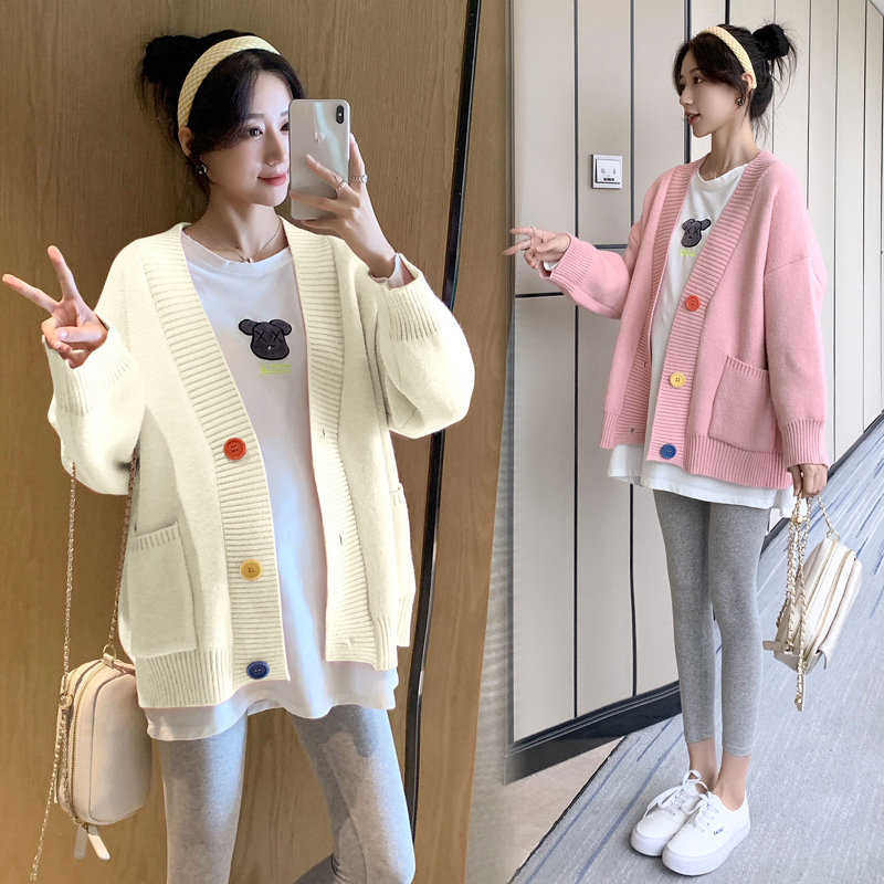 Pregnant woman sweater jacket with long version of autumn and winter clothing Pregnancy Woman Dress Fashion Suit Loose Knit Cardiovert Blouse Spring Autumn