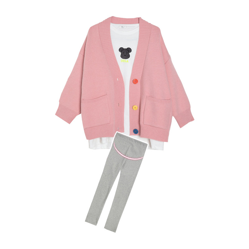 Pink open shirt beige sweatshirt 01#白色T恤粉色开衫 white t-shirt gray pants beige open-shirt white T-shirt gray pants