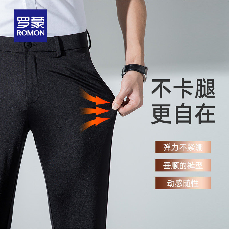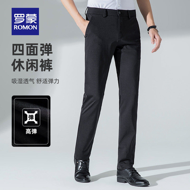 (Four-sided) Romon Men's Casual Pants 2022 Summer New Fashion Simple Straight Pants Professional Overalls