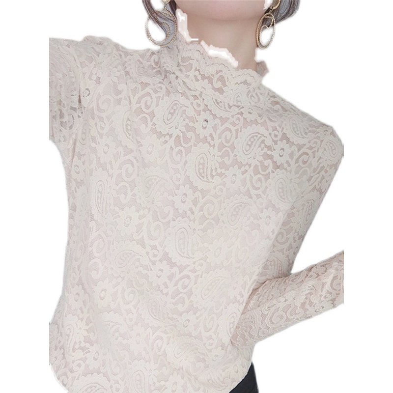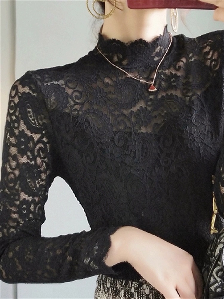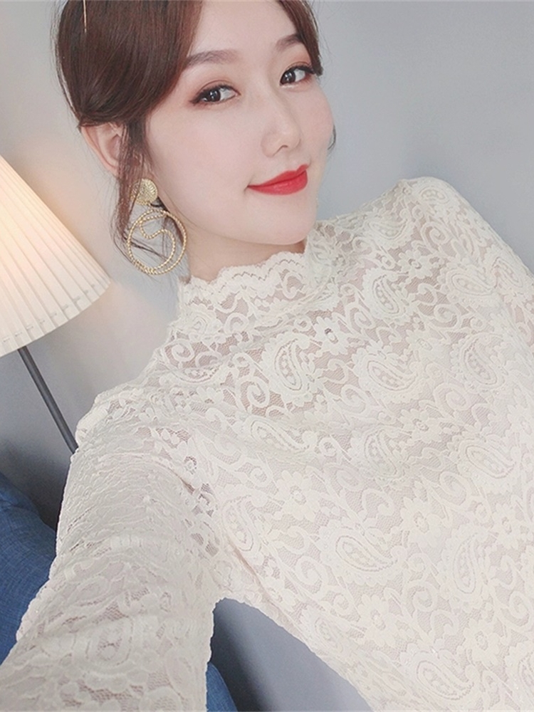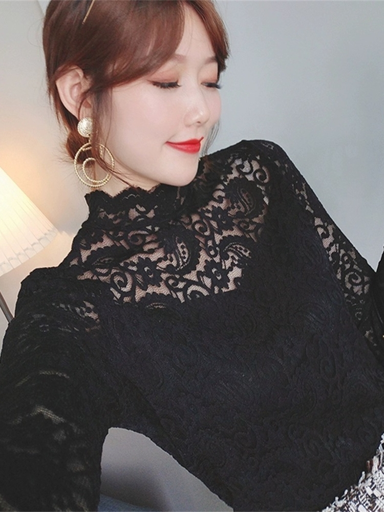 Sexy Lace Jersey Undershirt Woman 2021 Autumn Winter New European Goods Foreign Pie Long Sleeve Fairy gas mesh yarn Remain with a little sweatshirt