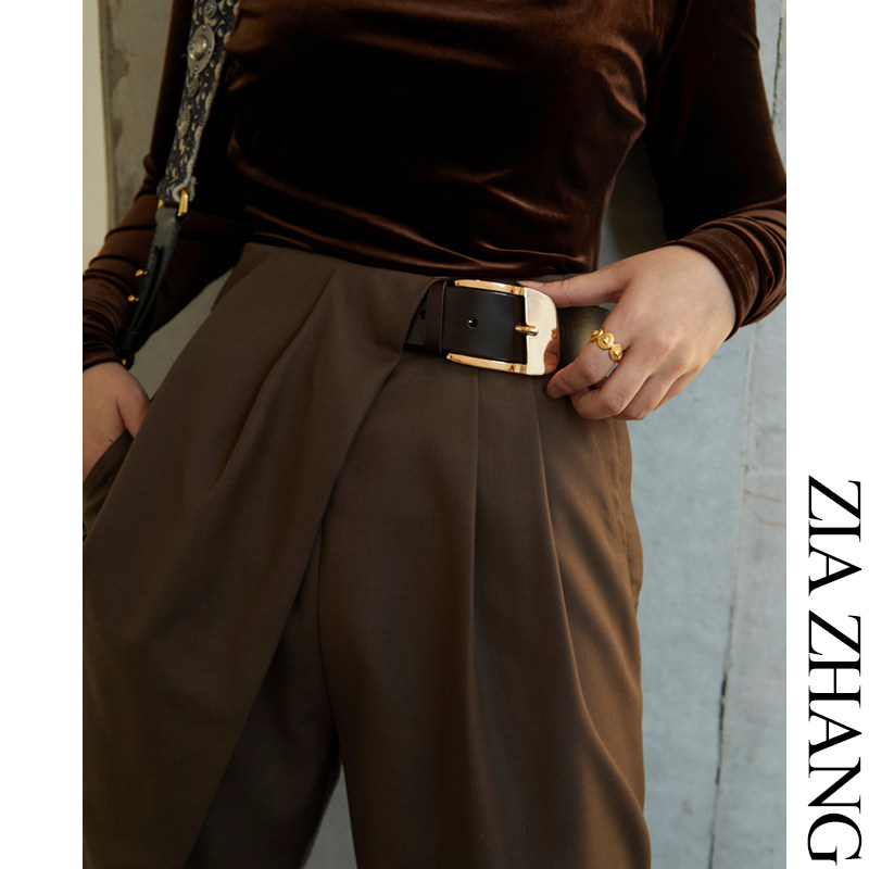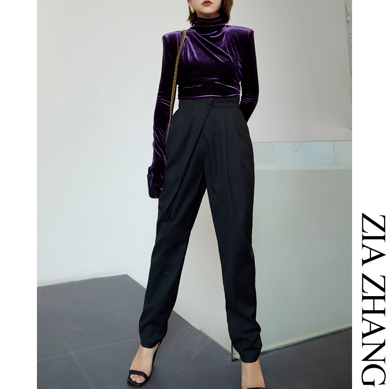 Z Boss Three-dimensional Folding Asymmetry Wool Western Pants Spring Autumn Thin style Casual Ladies Pants With No Girdle