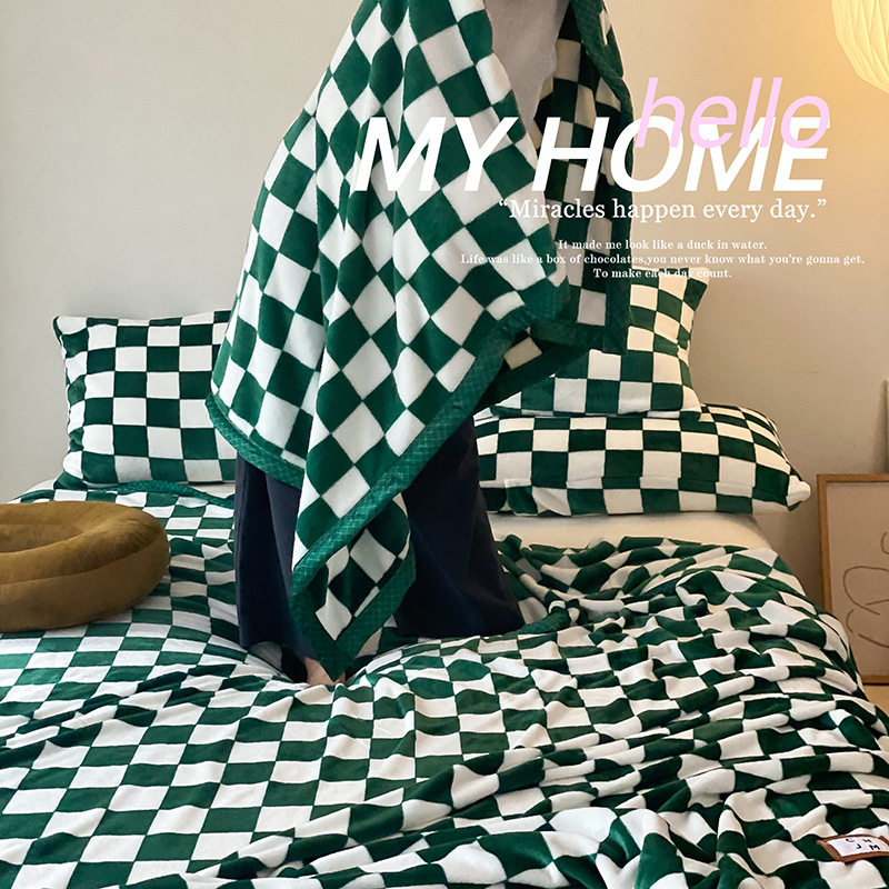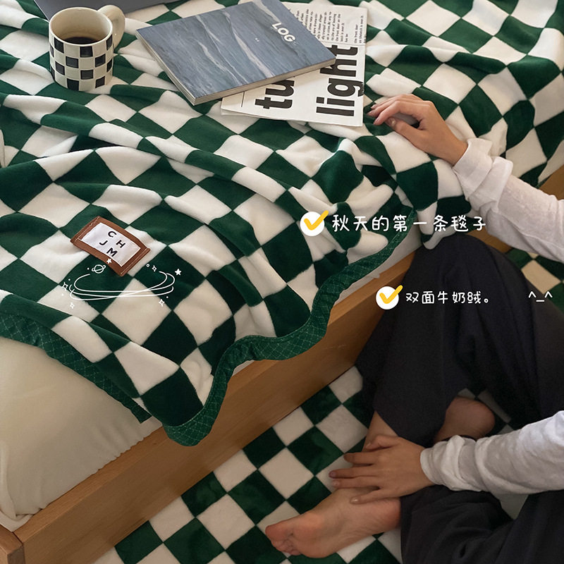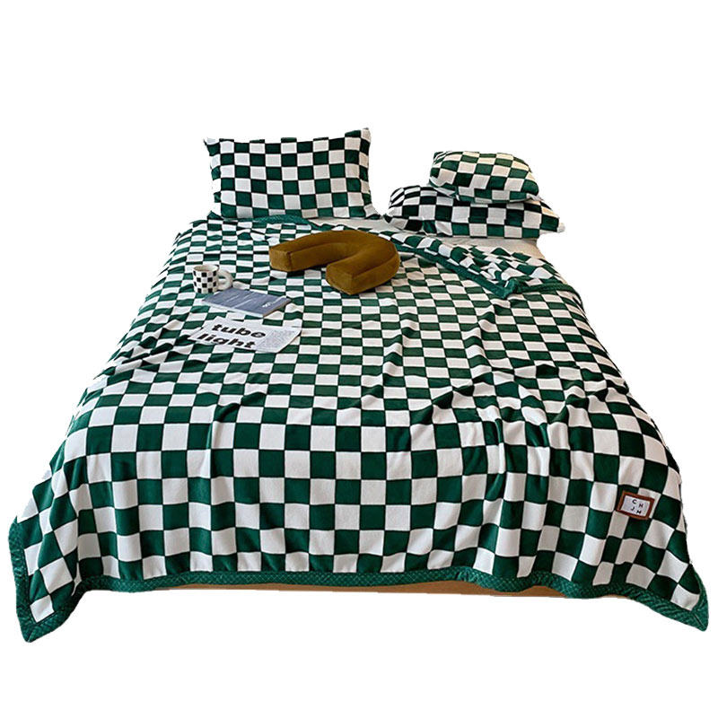 Nordic checkerboard lattice blanket vintage black and white plaid coral fleece blanket four seasons warm nap blanket net red air conditioning blanket