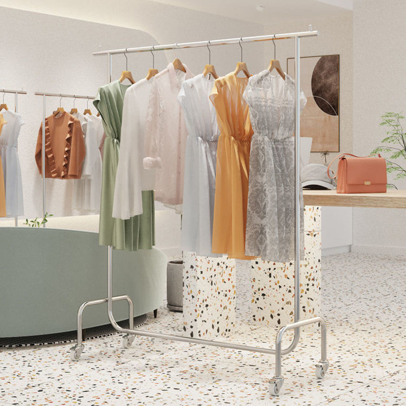 Special shelves for women's clothing stores display clothes hanger floor live children's clothing display props hanging clothes hanger rod stainless steel