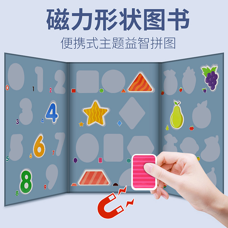 Baby Early Teach Puzzle Enlightenment Magnetic Patch Jigsaw Puzzle Digital Fruit Shape Cognition 1-2-3-4 Year Old Children Toy