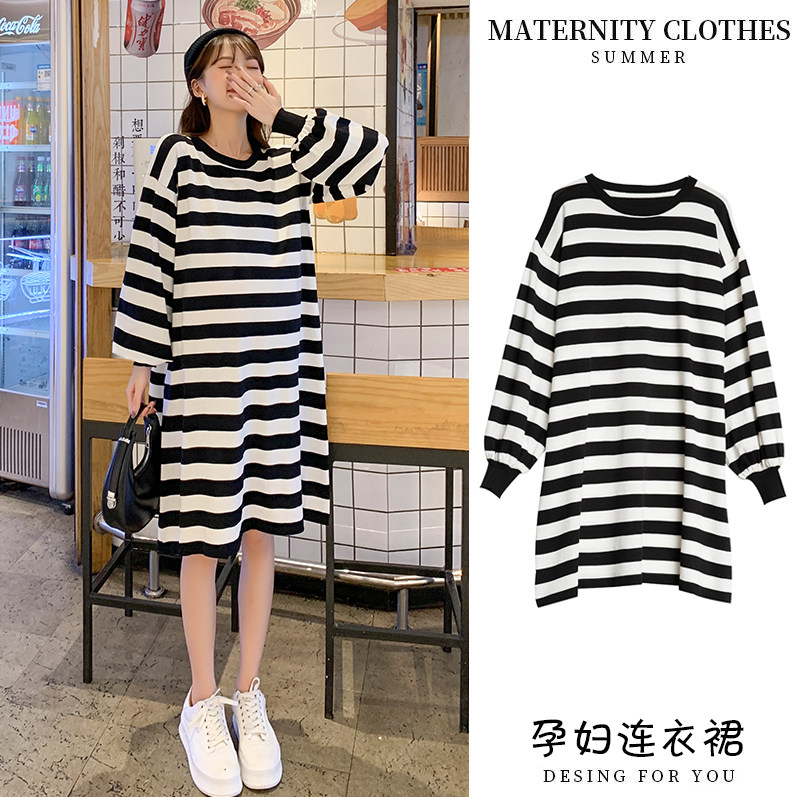 Pregnant Woman Autumn Clothing Fashion New Loose Striped Sweater Dresses Autumn Winter Knit Underskirt Wear Pregnant Women's Ocean Dress Surges