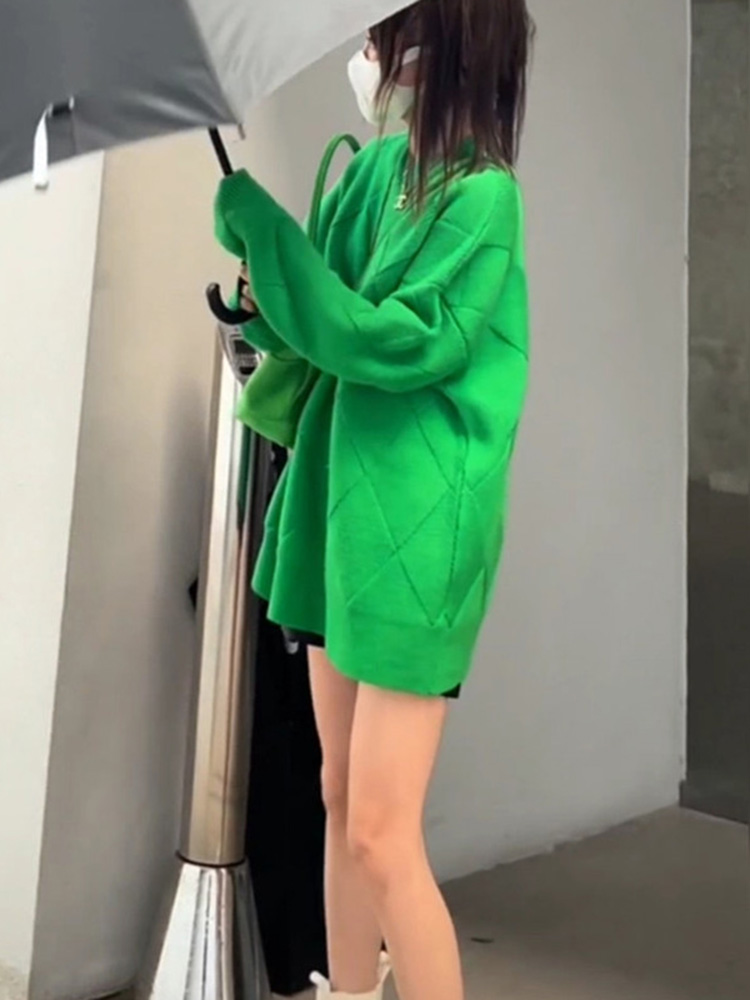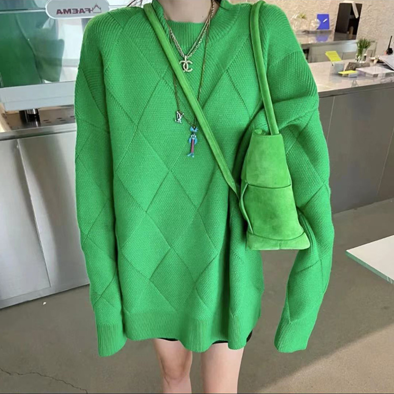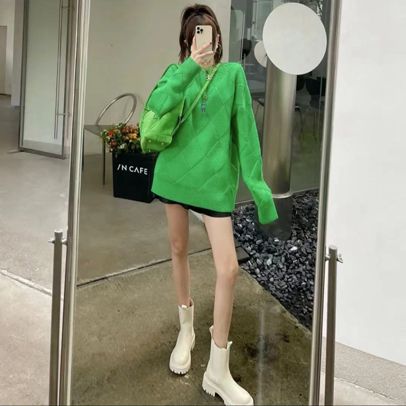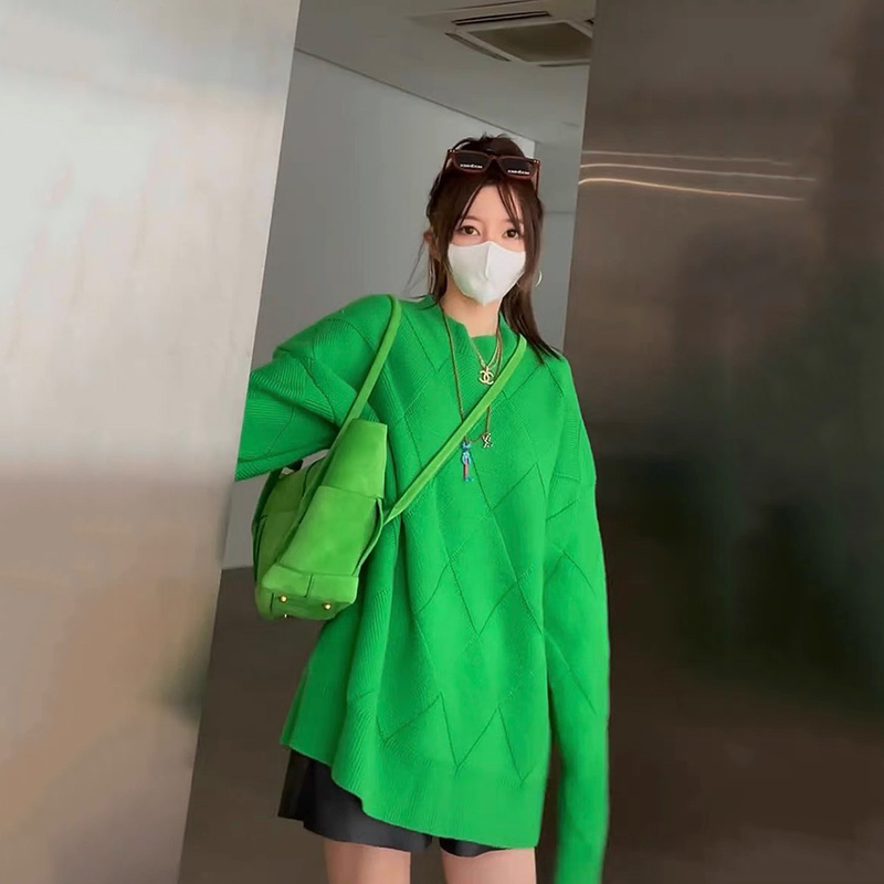 Autumn Fried Street Green Pullover Knitted Sweater Women's 2022 Lazy Loose Mid-Length Top Jacket Knit Sweater Thick