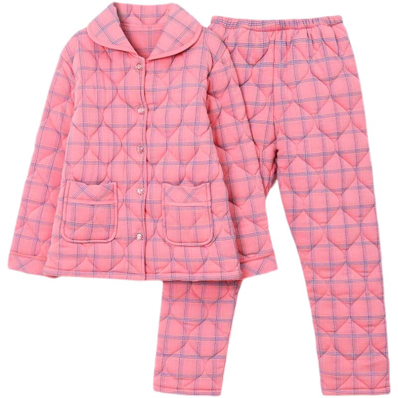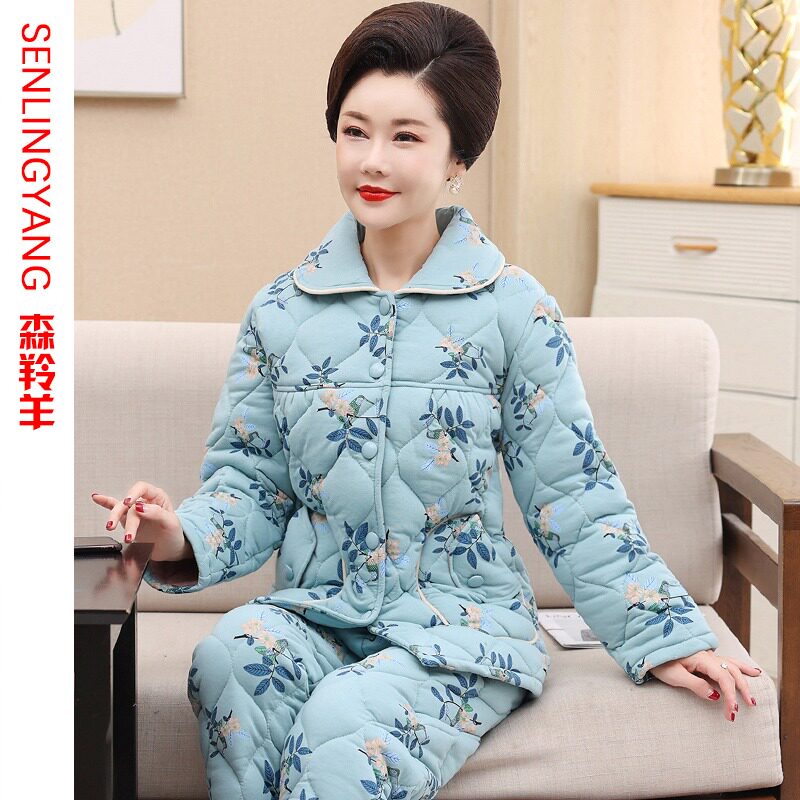 2021 Winter Lady Triple Clip Cotton Warm Pyjamas Thickened Pure Cotton Padded Jacket Middle-aged Mother Suit Home-Taobao