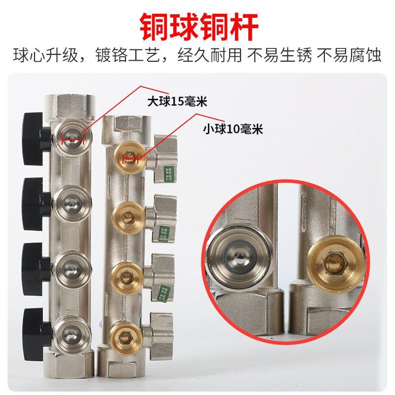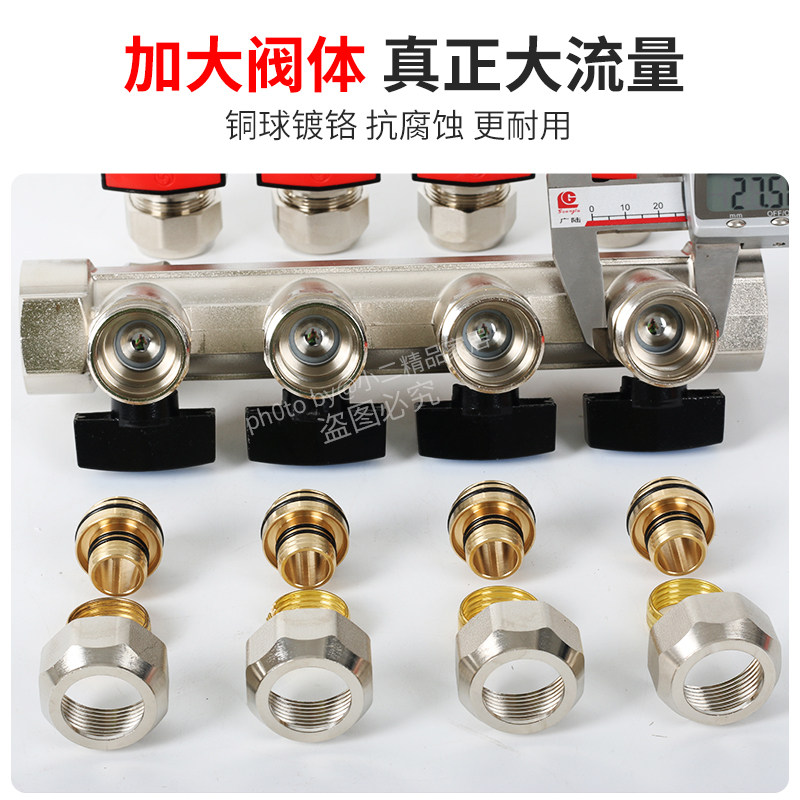 1 2 inch large flow Wojin Niu floor heating water divider geothermal inlet and return water jacket valve pure copper household heating