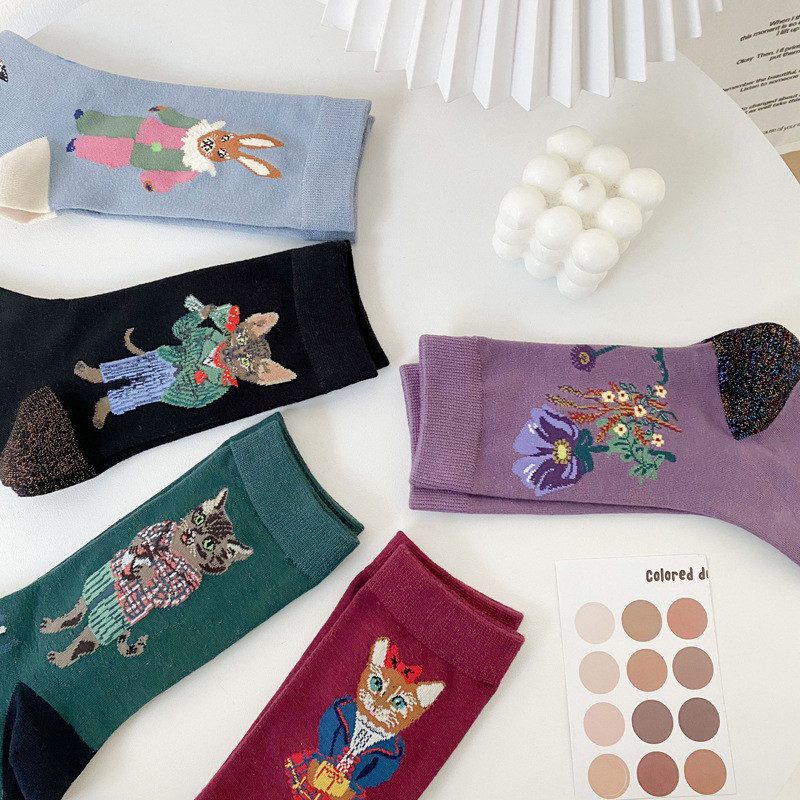 South Korean designer to create cute little kitty socks personality with long cylinder male and female socks