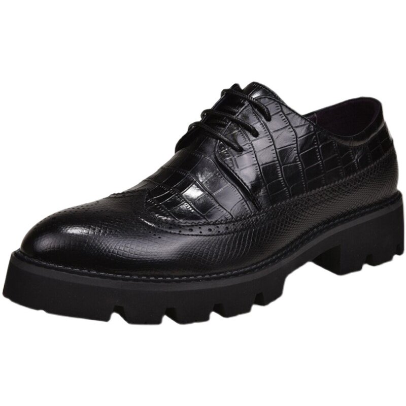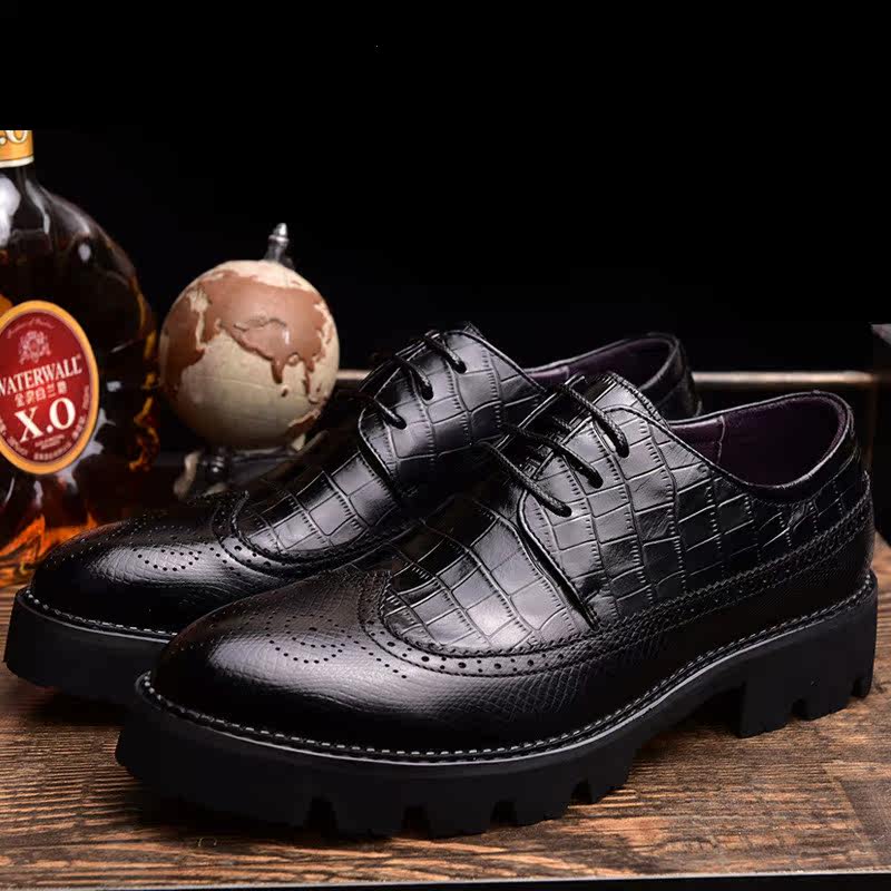 AMGCK brogue carved men's shoes thick bottom business casual leather shoes leather heightening shoes men Hong Kong