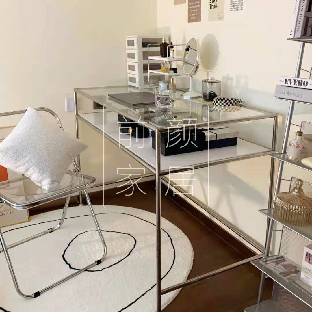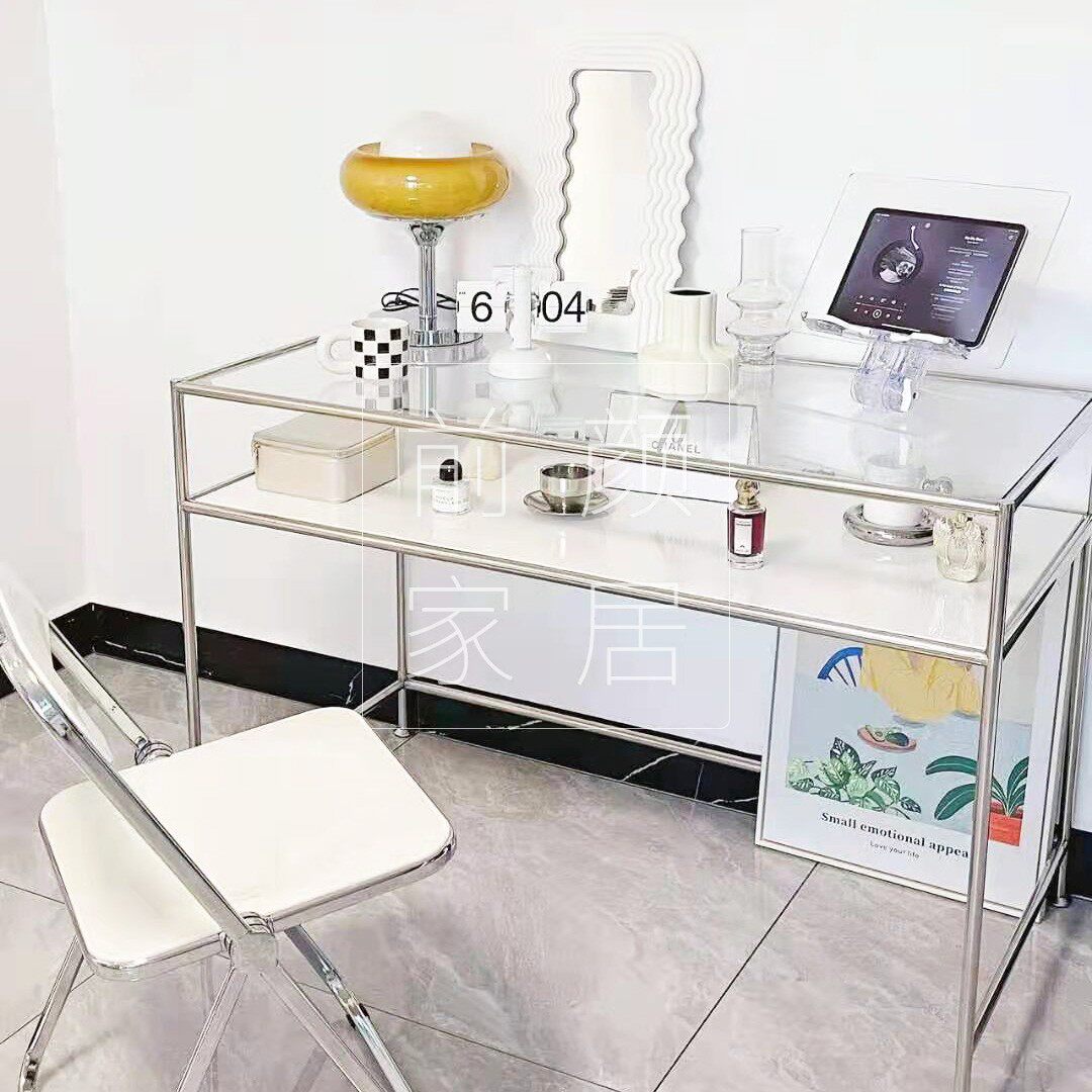 Medieval tempered glass corner dressing table desk one bedroom dressing table princess light luxury writer table live room