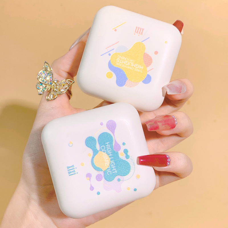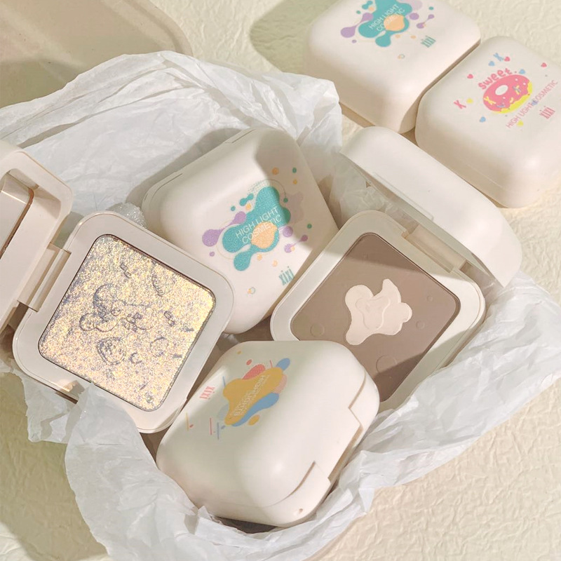 Luminous highlighter blush with nude makeup